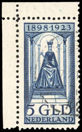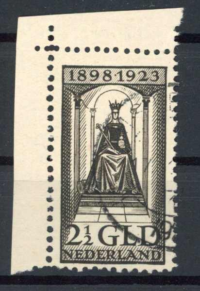1923, 2,50 und 5 G. 25 Jahre Regentschaft, die beiden Höchstwerte dieser Ausgabe als gest. Bogenecken, einheitlich aus der linken oberen Bogenecke, farbfrisch und gut gezähnt (ME 450,- ++), als Bogenecken selten angeboten (Image) (imagea)