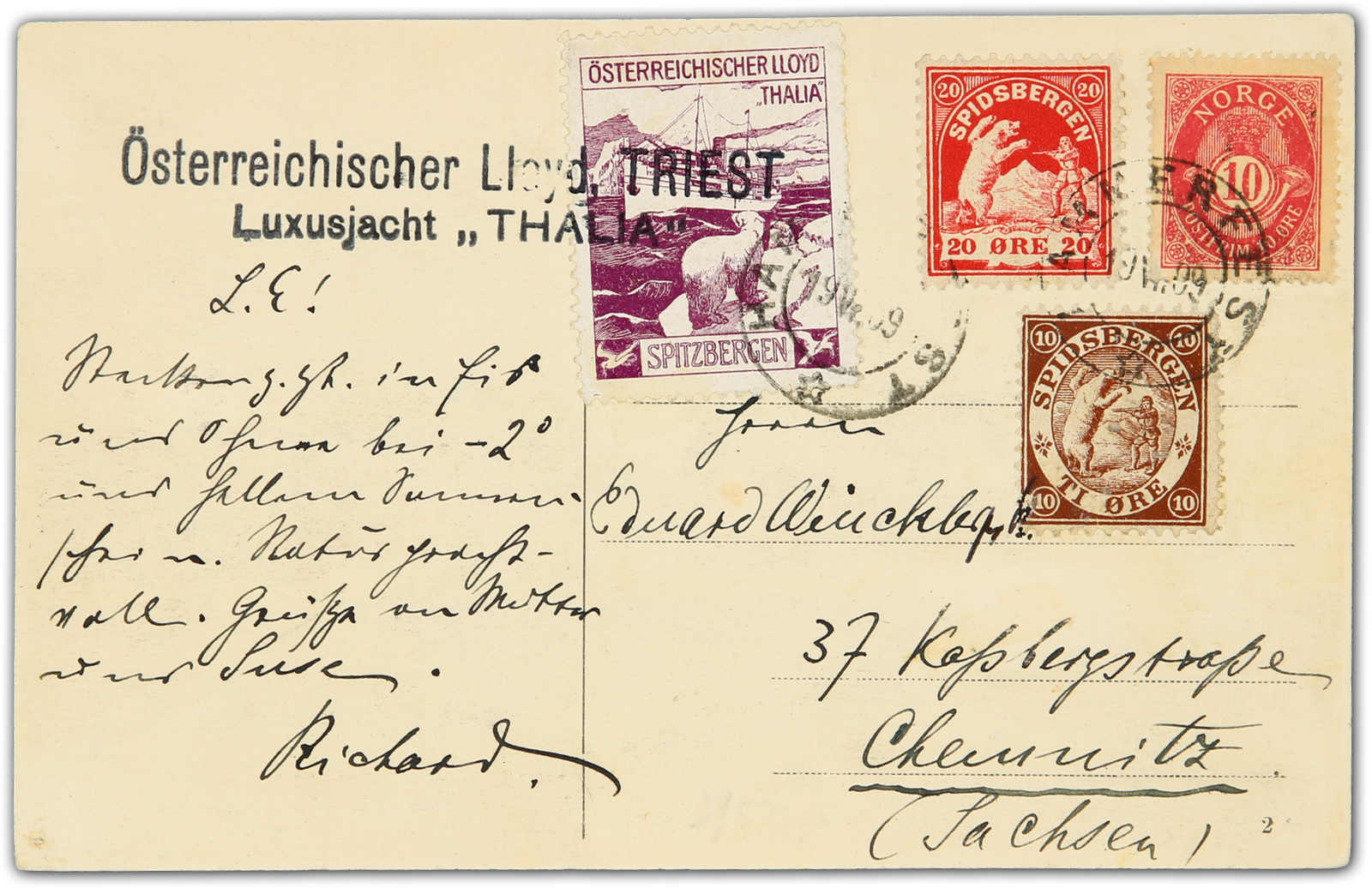 "Österreichischer Lloyd, TRIEST Luxusjacht "THALIA"", adressiert nach Chemnitz, seltener Beleg in guter Qualität (Image) (imagea)
