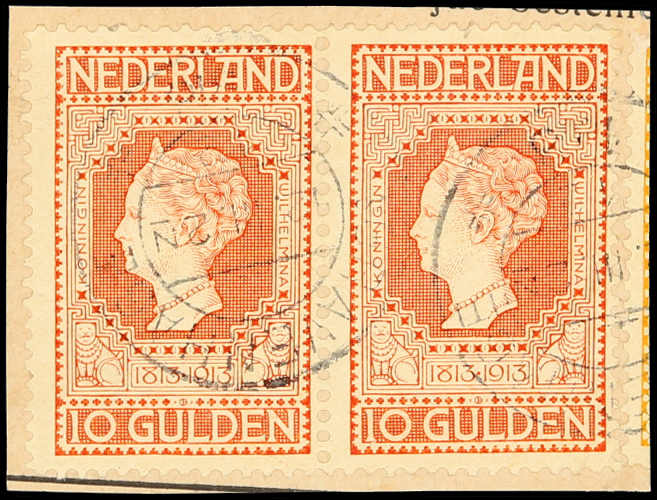 1913, 10 Gulden rot, waagerechtes Paar auf Briefstück (Image)