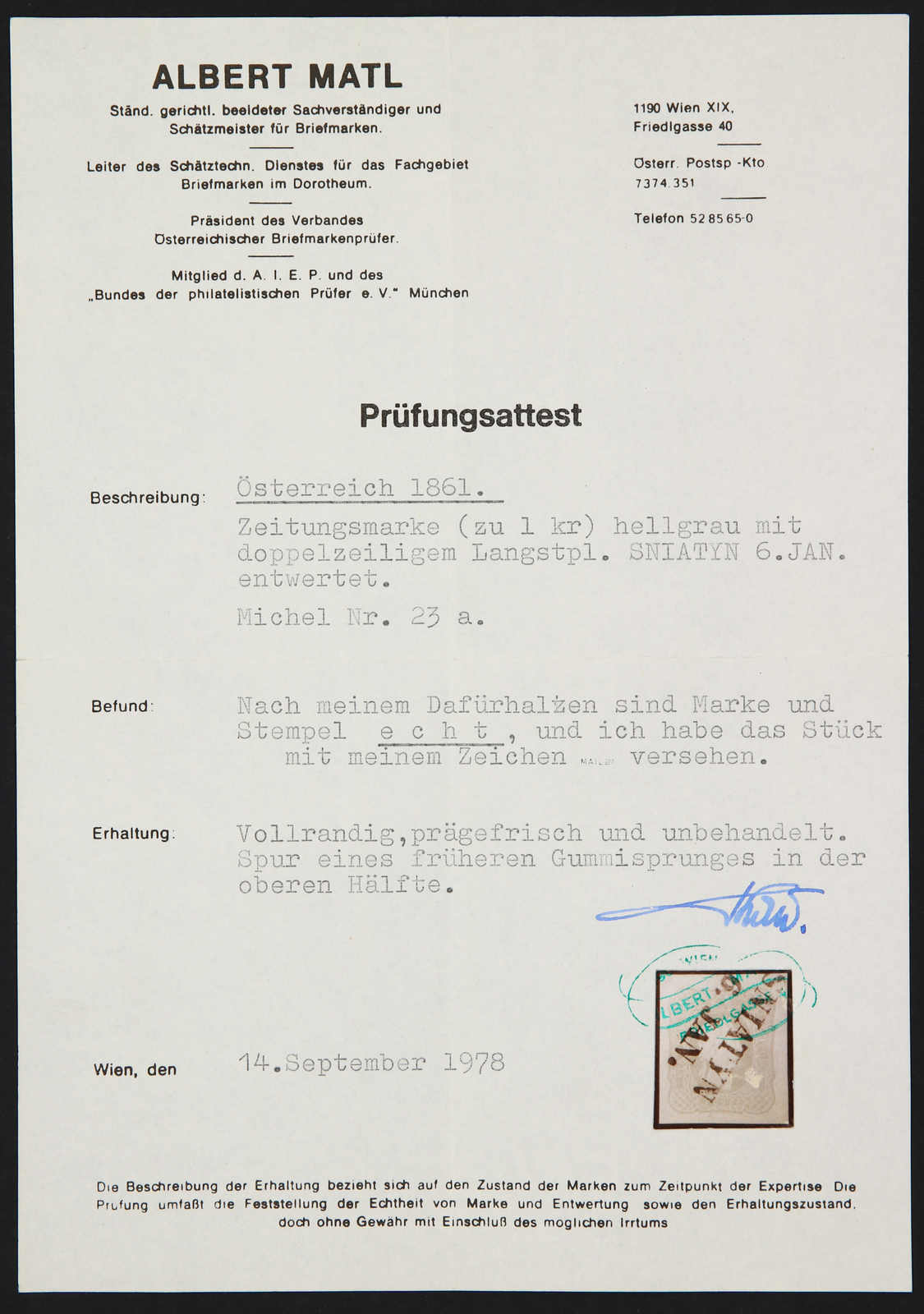 1858/1925, Auswahl der genannten Mi-Nr. meist gestempelt, für einen gestempelten Wert Attest Matl (Image) (imagea)