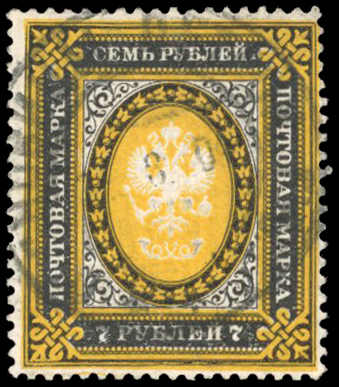 1884, 7 R. Staatswappen, Posthorn ohne Blitze, senkrecht gestreiftes Papier, gestempelt, gute Qualität, sign. Gebr. Senf (ME 1.000,-) (Image)