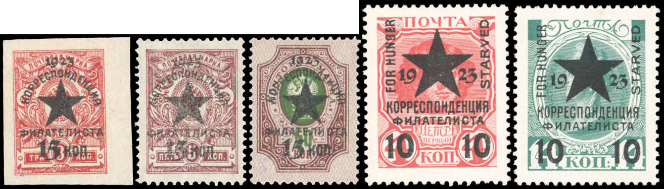 1923, 10 K. a. 4 K. lebhaftbraunrot bis 15 K. a. 50 K. braunlila/grün, Tausch-Kontrollmarken, die kpl. Überdruckausgabe von 5 ungebrauchten Werten, farbfrisch und gut gezähnt, bzw. breitrandig geschnitten, je sign. Richter, einwandfrei,