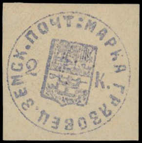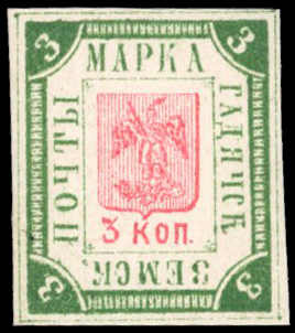 1884, Gadyach 3 K. Wappen mit der Inschrift "MAPKA" grün/rot, ungebr. Einzelwert, farbfrisch und gleichmäßig breit geschnitten, rückseitig Falzspur und kleine Anhaftungen sowie waagerechte Bugspur, sonst einwandfrei (Image)
