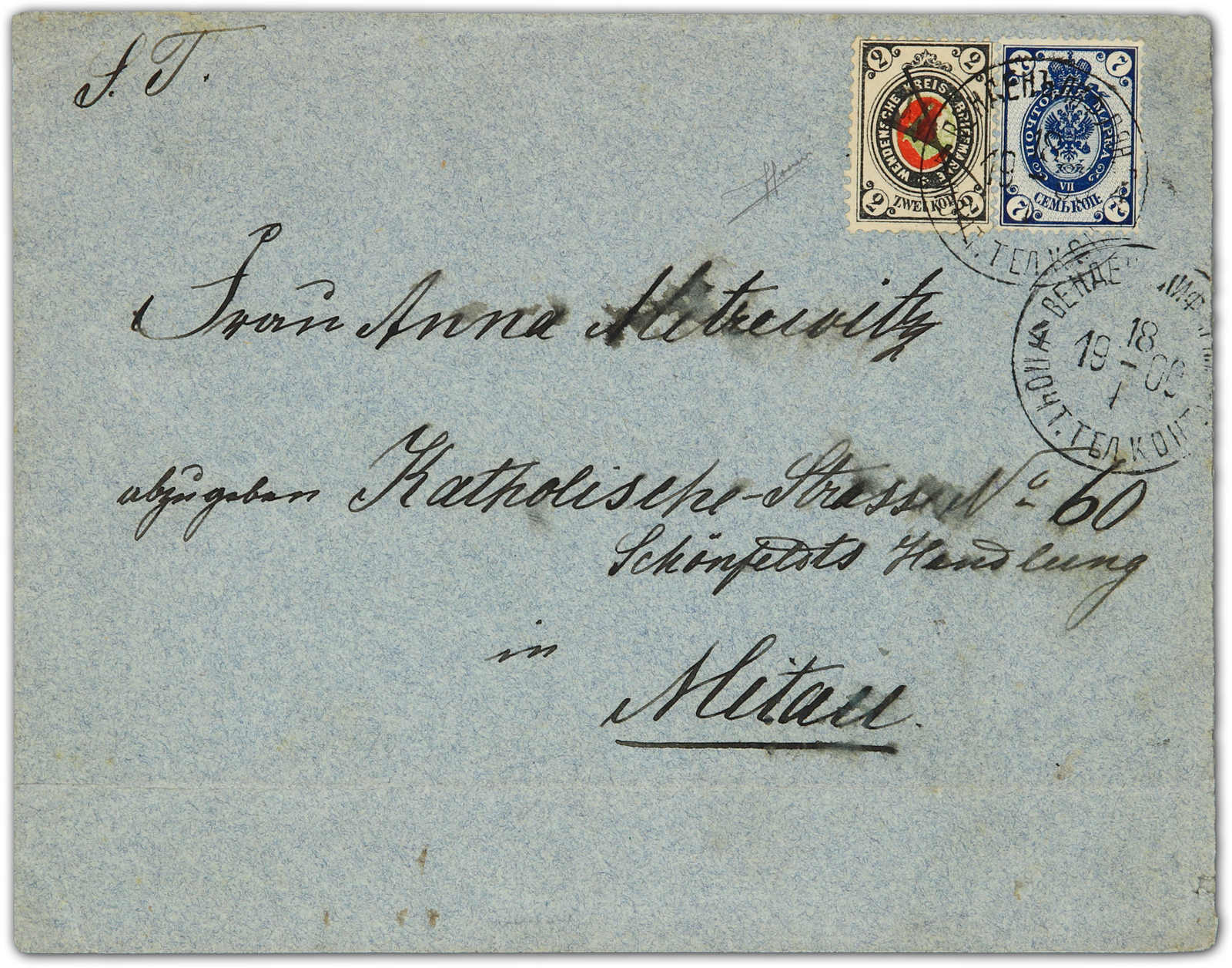 1900, cover from Cēsis - Wenden / Latvia to Mitau bearing 7 kop, blue and local issue 2 kop wenden tied by postmark dated 18,1,00 cds (Image) (imagea)