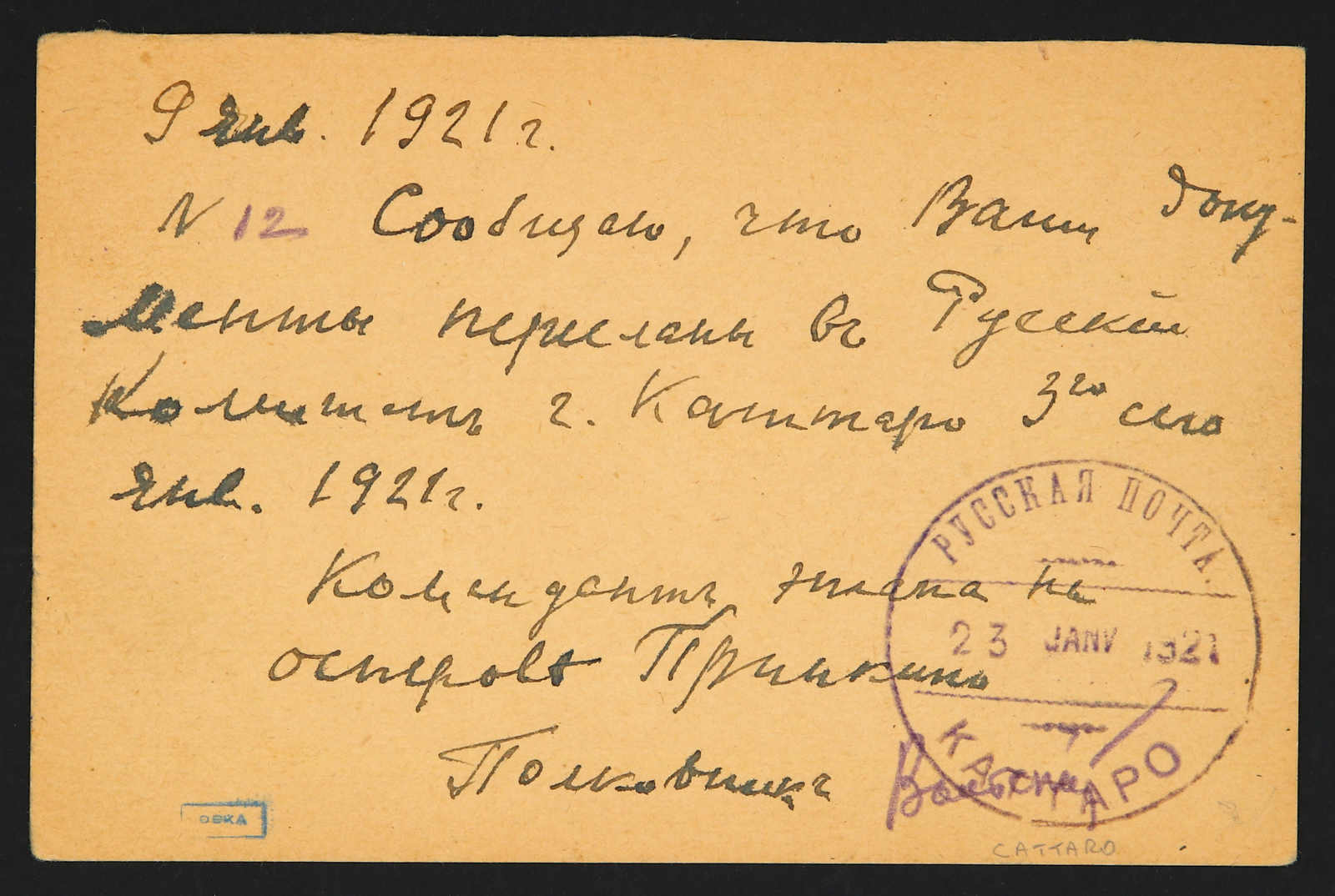 1921, Wrangel army postal stationery card used as formula with additional 10000 rb. Stamp tied by "Prinkipo" postmark (Image) (imagea)
