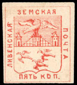 1873, LIVNY, 5 K. Wappen rot, ungebr. Einzelwert, farbfrisch und voll- bis breitrandig geschnitten, etwas fleckige Gummierung, nach Soloviev-Katalog 4.000,-, selten angeboten (Image)