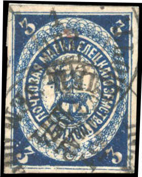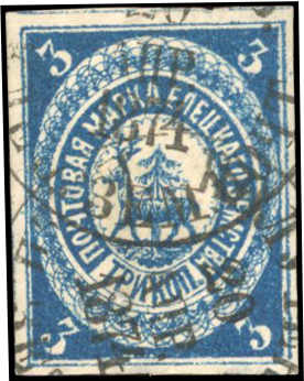 YELETS, 1873, 3 Kop. dunkelblau, gest. Einzelwert, farbfrisch und gut gerandet , einwandfrei (nach Soloviev 1.200,-) (Image)