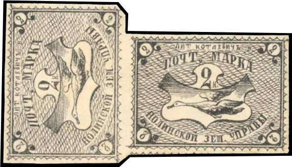 NOLINSK, 1876, 2 Kop. Wappen schwarz a. weißem Papier, waagerechtes ungebrauchtes Paar, dabei der rechte Wert liegend und der linke Wert stehend, farbfrisch und gut geschnitten, gute Qualität (nach Soloviev 1.200,-) (Image)