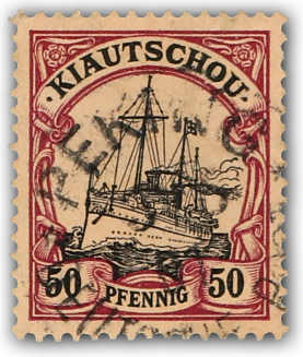 1901, 50 Pfg. Kaiseryacht von Kiautschou dunkelbräunlichlila/rotschwarz auf mattbraunorange als Petschiliausgabe, gestempelt "PEKING 3/5 01", farbfrisch, einwandfrei, signiert u.a. Köhler, Fotoattestkopie (Original lag vor)