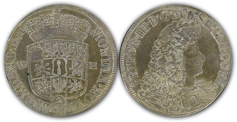 PREUSSEN: 1691, 2/3 Taler WH, ss, zapponiert (Image)