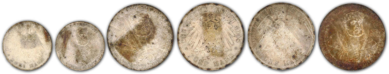 SACHSEN-WEIMAR-EISENACH: 1908, Uni Jena, Lot 3 Stück, 2 Mark und 2 Stück 5 Mark, alle vz mit unregelmäßiger Patina (Image)