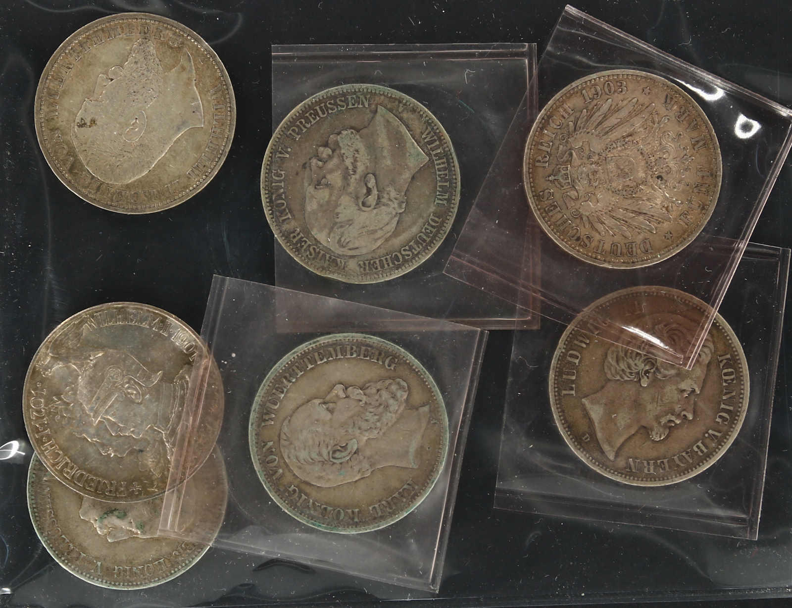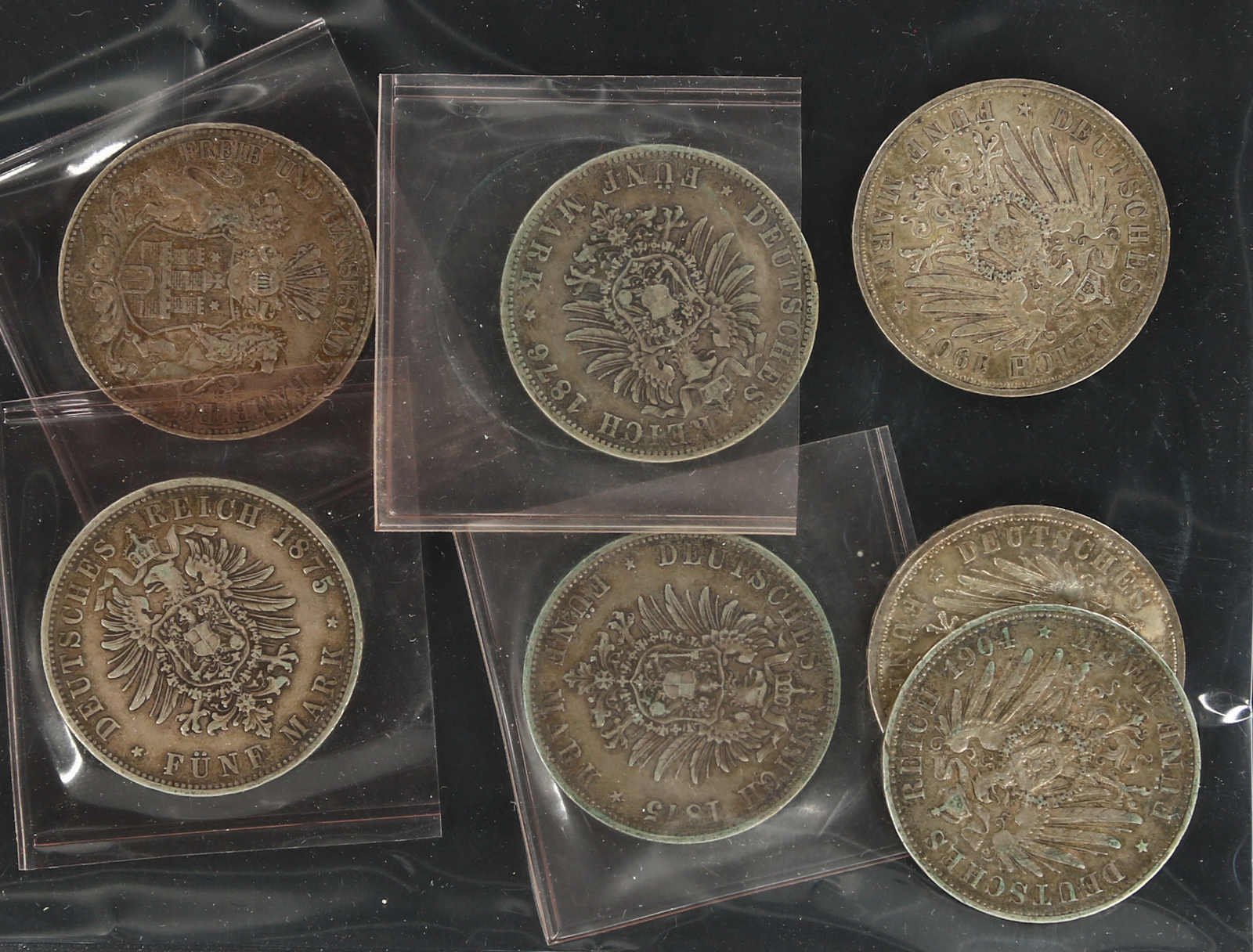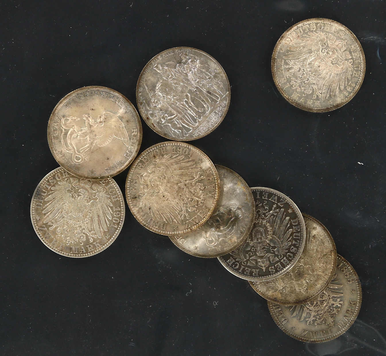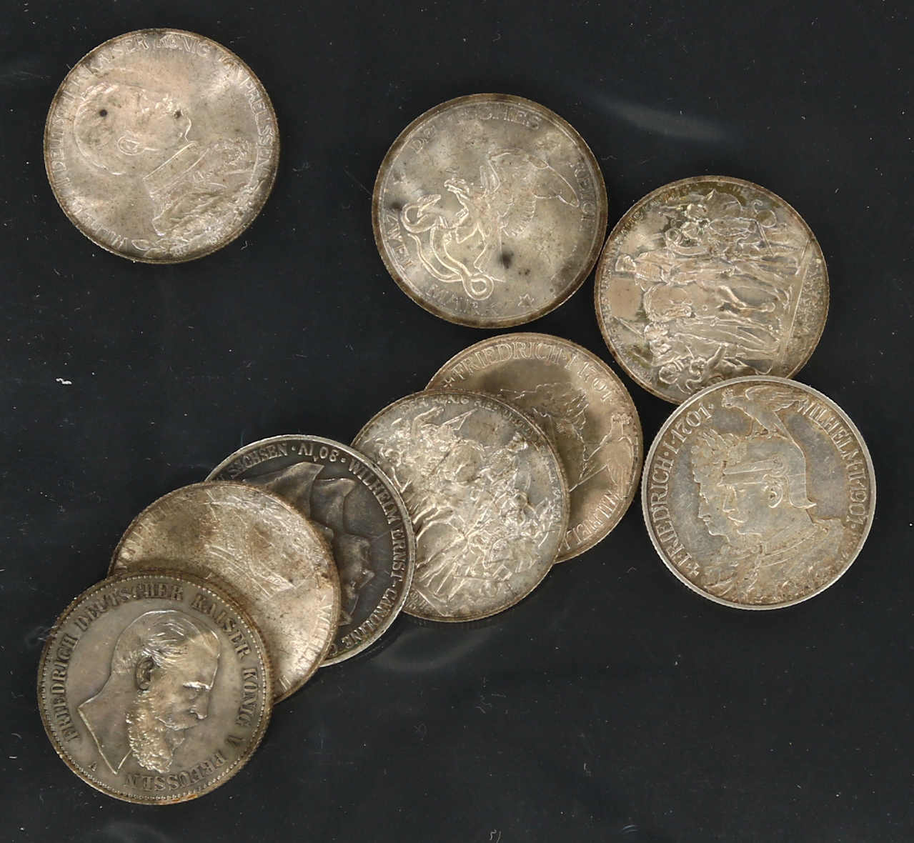SILBERLOT: 1875/1910 ca., dt. Kaiserrreich 10 Stück 2 Mark vorwiegend vz, 12 Stück 3 Mark vorwiegend vz, 7 Stück 5 Mark ss bis vz, enthalten Preußen, Württemberg, Bayern, Hamburg und Sachsen (Image) (imagea)