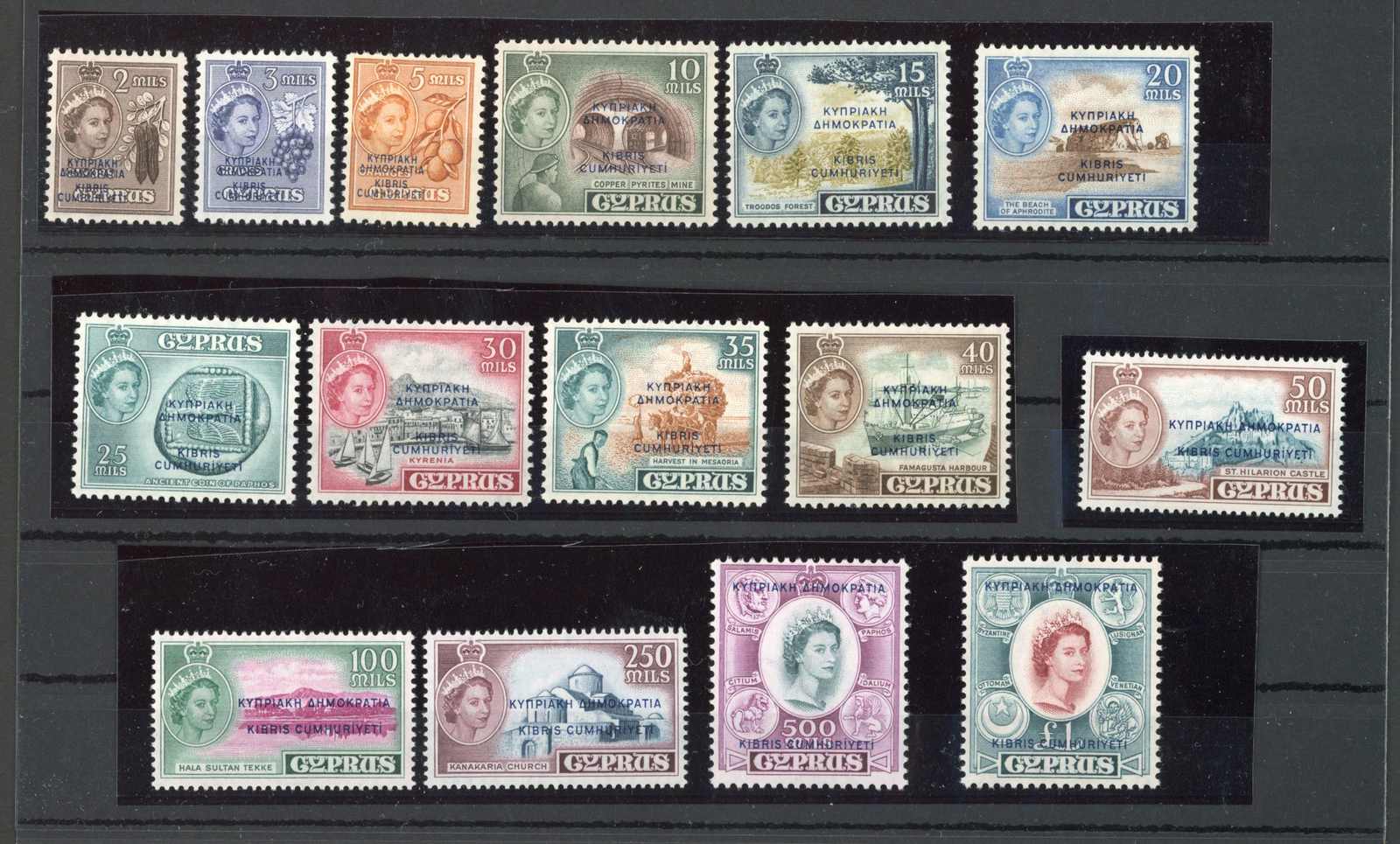 1960, 2 M. bis 1 Pfund mit griechischem und türkischem Aufdruck, die kpl. Ausgabe von 15 postfr. Werten, farbfrisch und gut gezähnt, einwandfrei