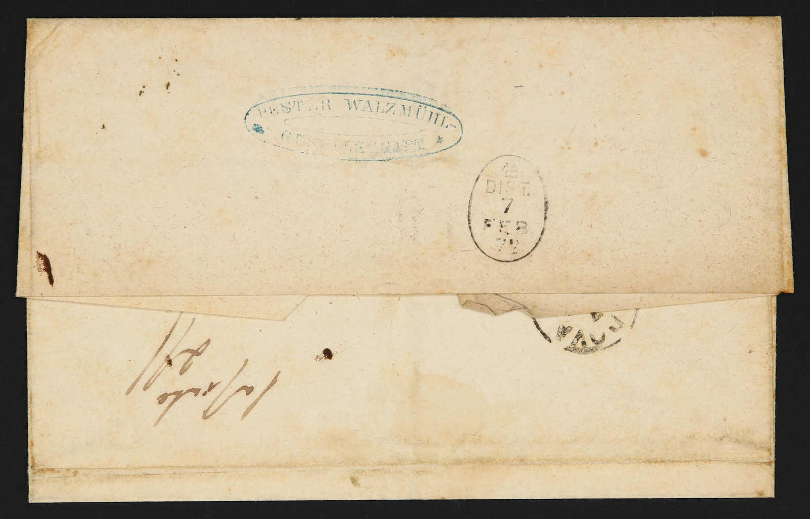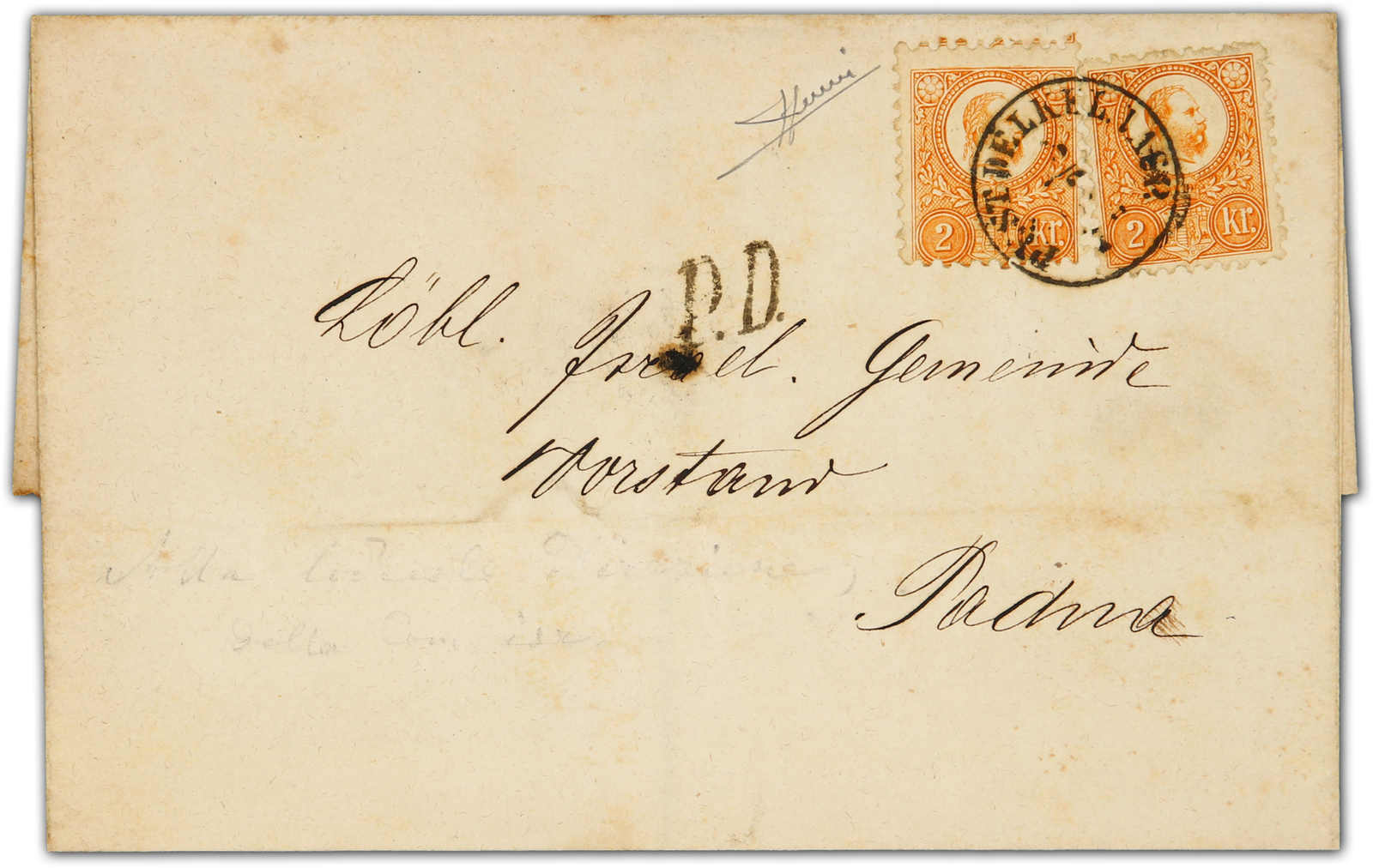 1872, entire letter bearing two 2 kr. first issue stamps tied by Pest postmark sent to Padova/Italy (Image) (imagea)