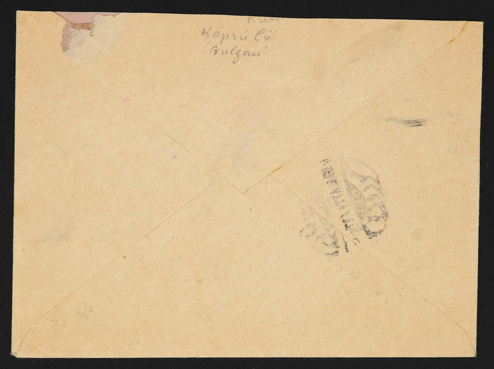 1913, cover sent from Veles to Constantinople bearing single franking 1910 issue 1 piastre blue tied by bilingual "KEUPRULU" postmark dated "19.10.13", on reverse arrival postmark (Image) (imagea)
