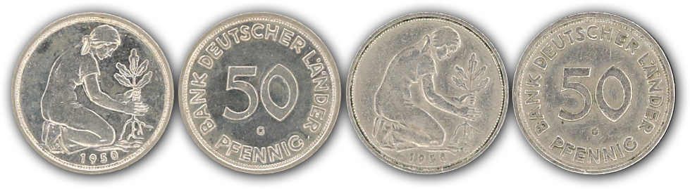 BDL: 1950, 2 Stück 50 Pfennig 1950 G, eins in ss, eins in vz (Image)