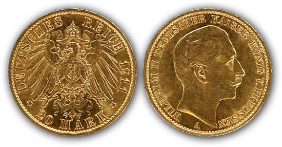 PREUSSEN: 1911, 20 Mark, 900 Gold, 7,96g, vz (Image)