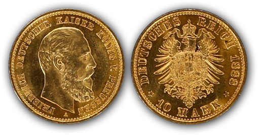PREUSSEN: 1888 A, 10 Mark mit Bart, 900 Gold, 3,98g, vz+ (Image)