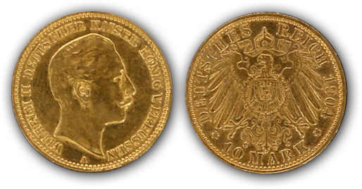 PREUSSEN: 1904 A, 10 Mark, 900 Gold, 3,98g, ss+ (Image)