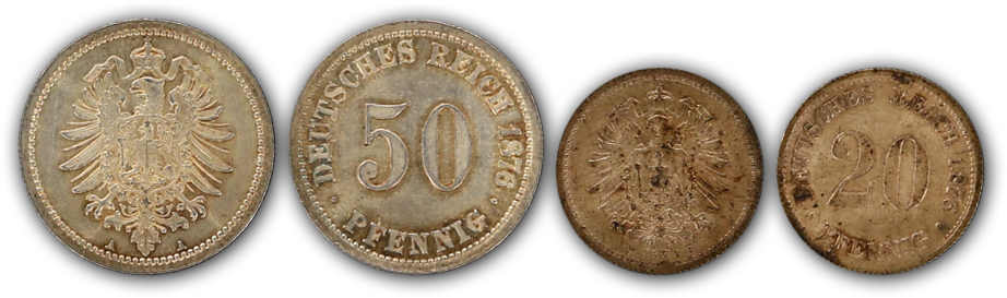 SILBERKLEINGELD: 1876, 20 Pfennig F und 50 Pfennig A, beide stgl (Image)