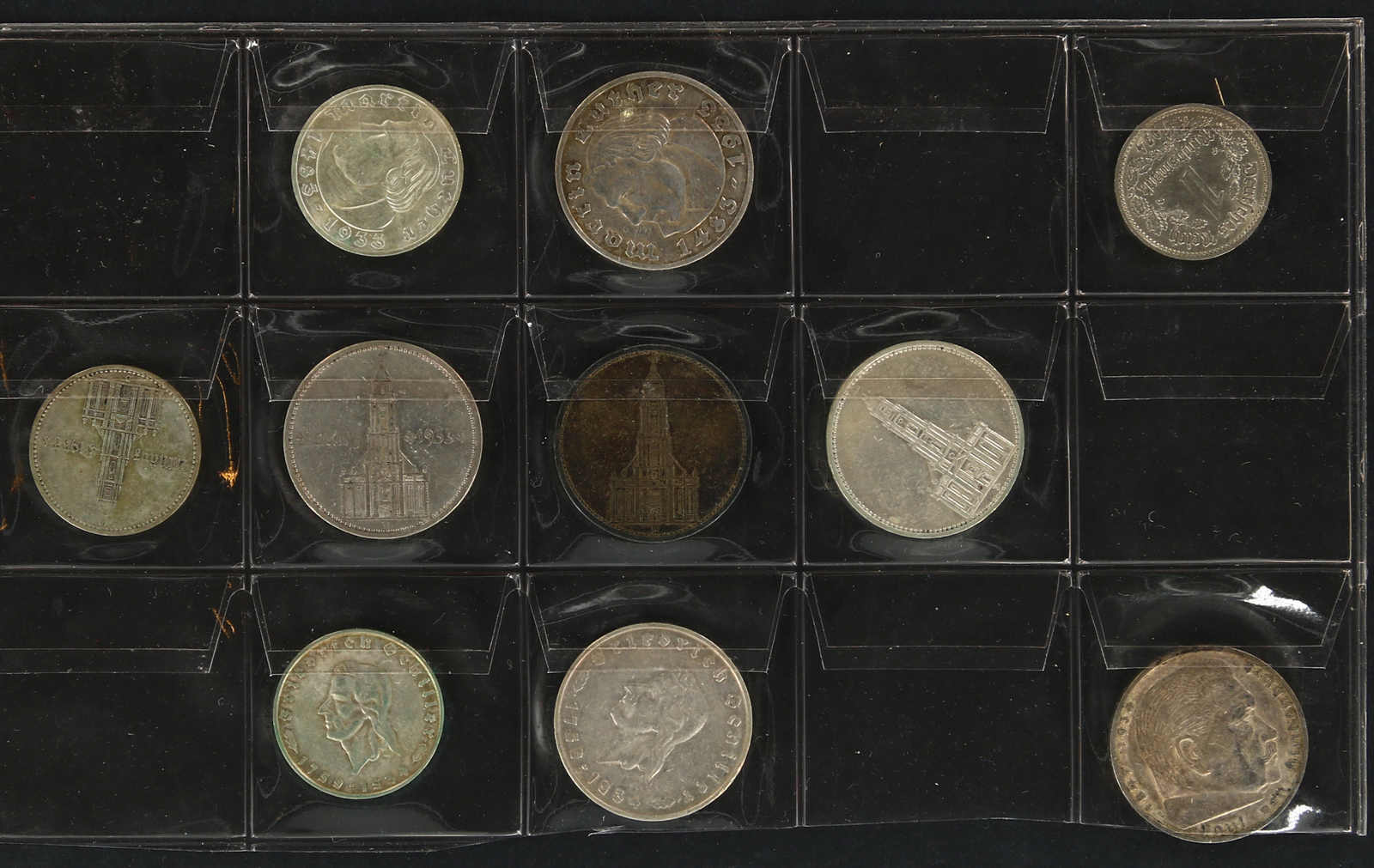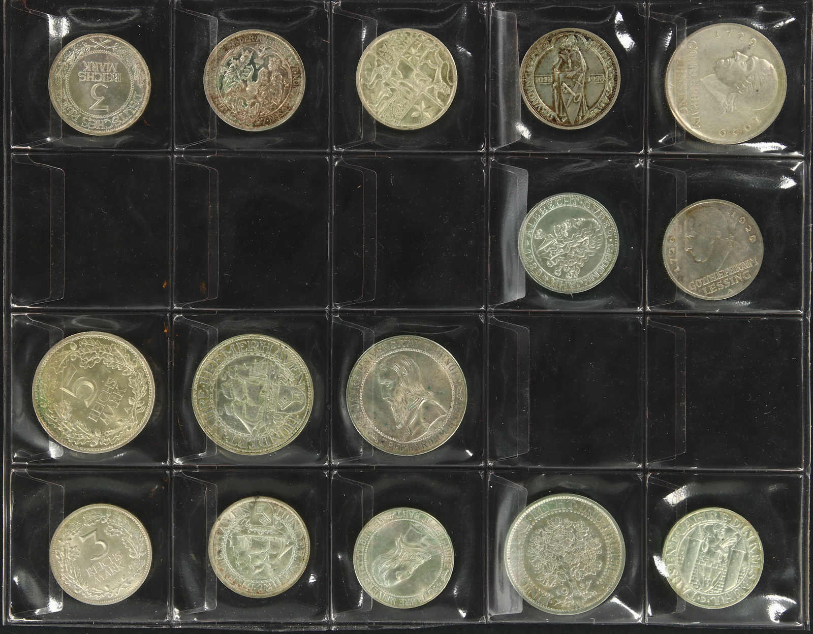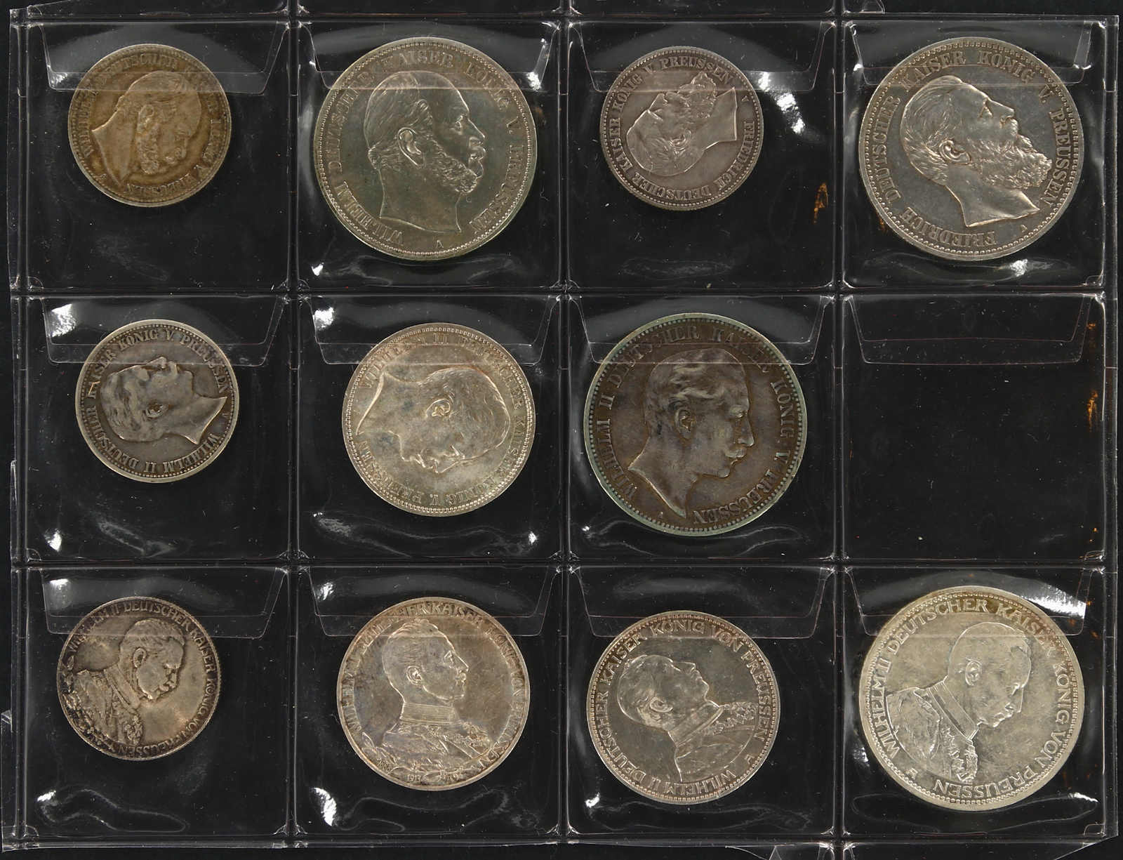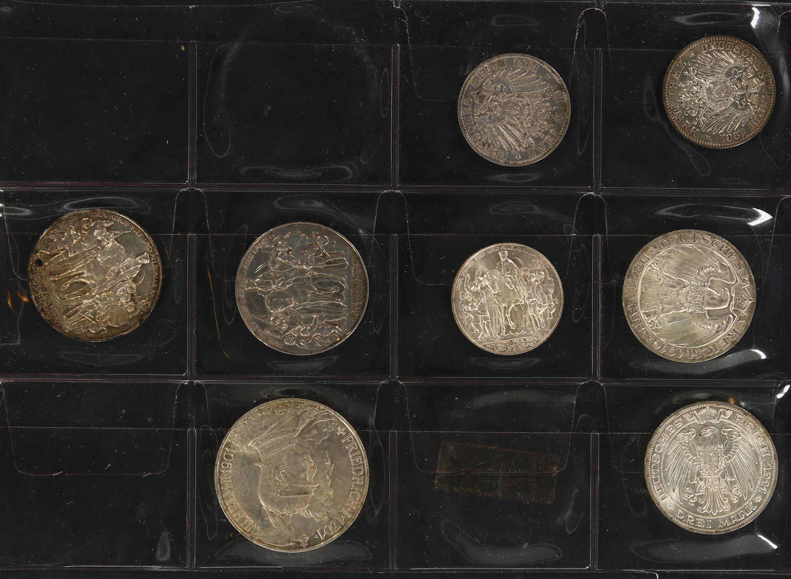 PREUSSEN: 1875/1914 ca., 5 Stück 5 Mark u.a. 1888 Bart vz und 1901 vz, 7 Stück 3 Mark u.a. Uni Berlin und Breslau, 6 Stück 2 Mark, dazu Kleinmünzen, z.B. 50 Pfennig 1977 C ss und etwas III. Reich, u.a. 5 RM Schiller und Goethe ss (Image) (imagea)