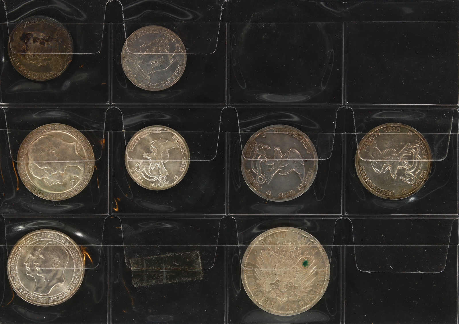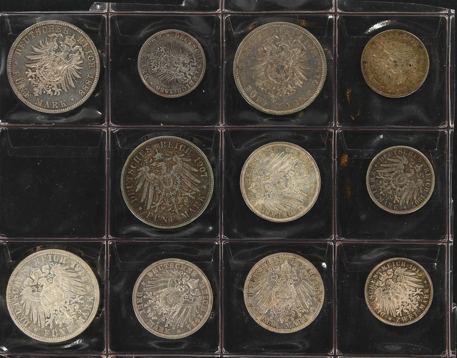 SILBERPOSTEN: 1874/1910 ca., 6 Stück 3 Mark, 12 Stück 5 Mark vertreten Bayern, Sachsen, Preußen, Hamburg, alle Durchschnitt ss, dazu 2mal 5 RM, 1 oz Silber Meaple Leaf und 10 Euro CuNi (Image) (imagea)