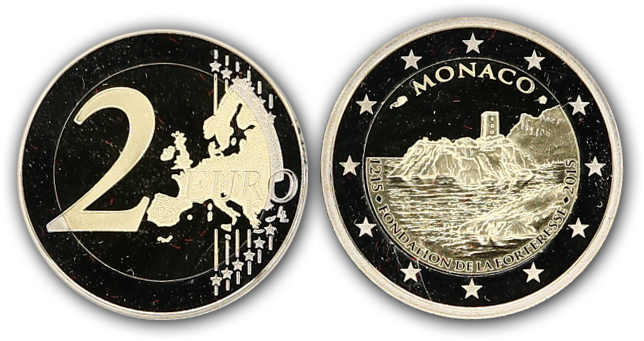 MONACO: 2015, 2 Euro PP 800 Jahre Bau des ersten Schlosses auf dem Felsen, mit originaler Box, Zertifikat und Schleife (Image) (imagea)