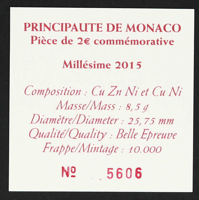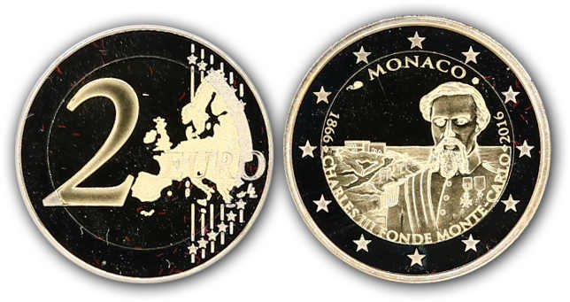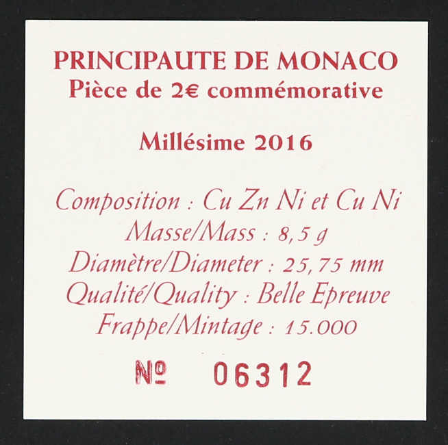MONACO: 2016, 2 Euro PP Jahrestag der Gründung Monte Carlos, mit originaler Box, Zertifikat und Schleife (Image) (imagea)