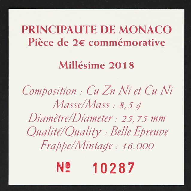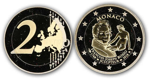 MONACO: 2018, 2 Euro PP François-Joseph Bosio, mit originaler Box, Zertifikat und Schleife (Image) (imagea)