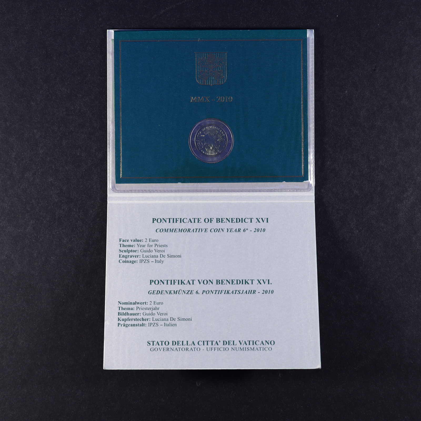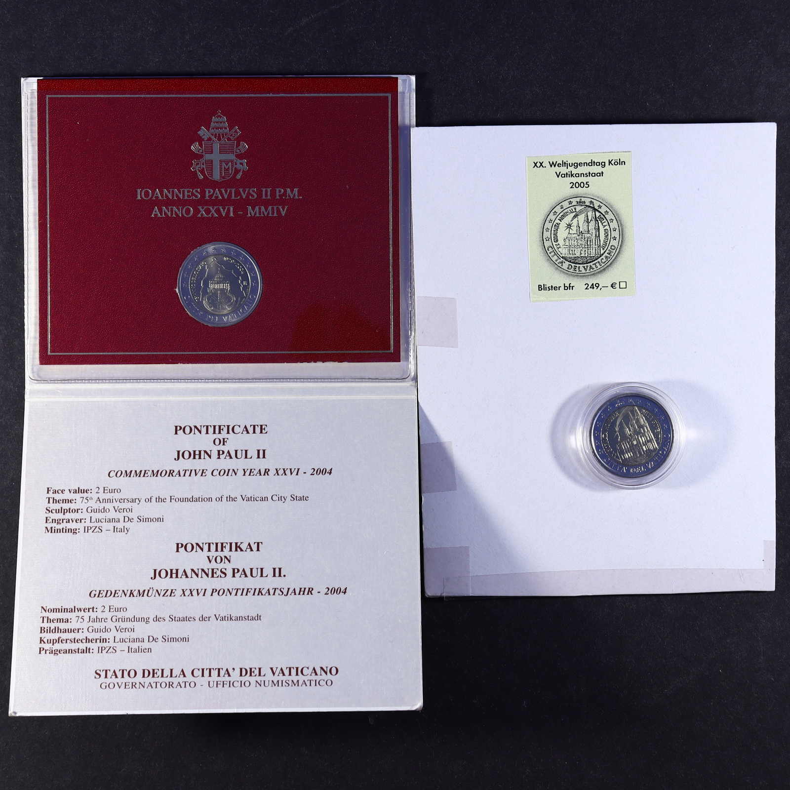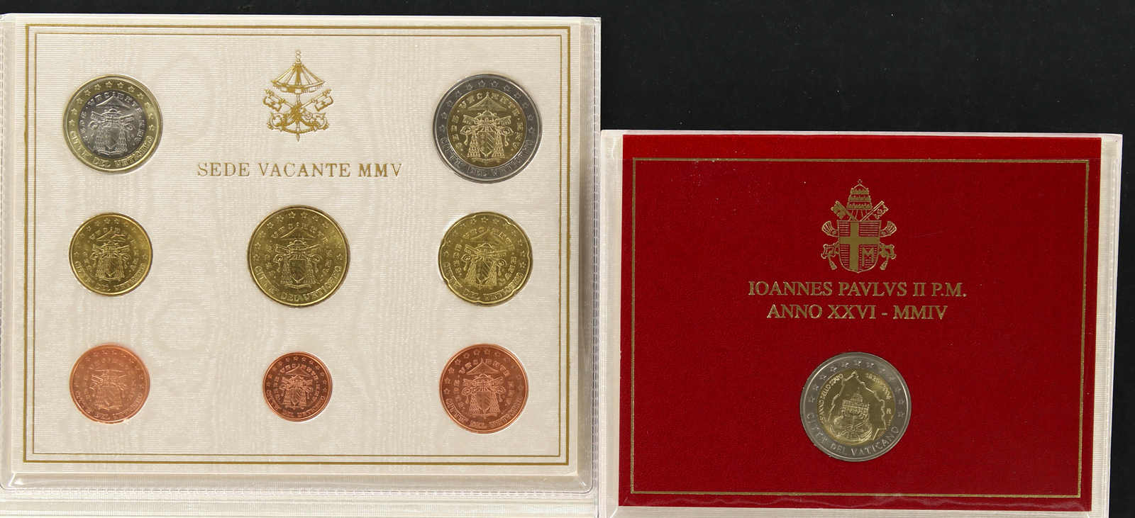 VATIKAN: 2005/18, 2 Euro 2005 im Blister, KMS 2007 PP (Schleife stärkere Gebrauchsspuren), 5 und 10 Euro Silber 2004 und 2006 jeweils im Blister, dazu 10 originale Vor-Euro KMS (Image) (imagea)