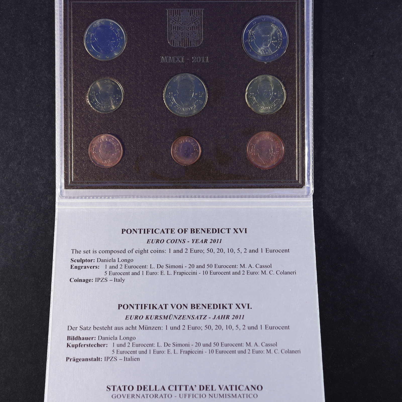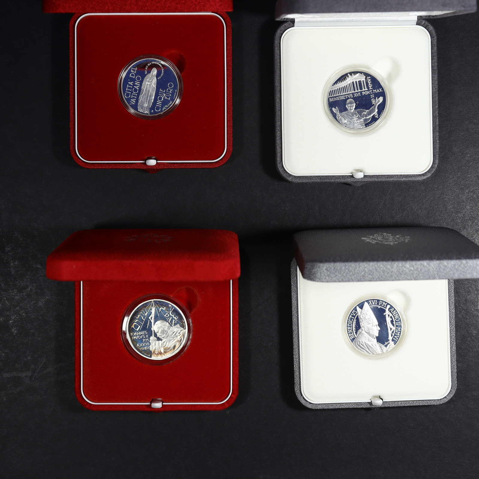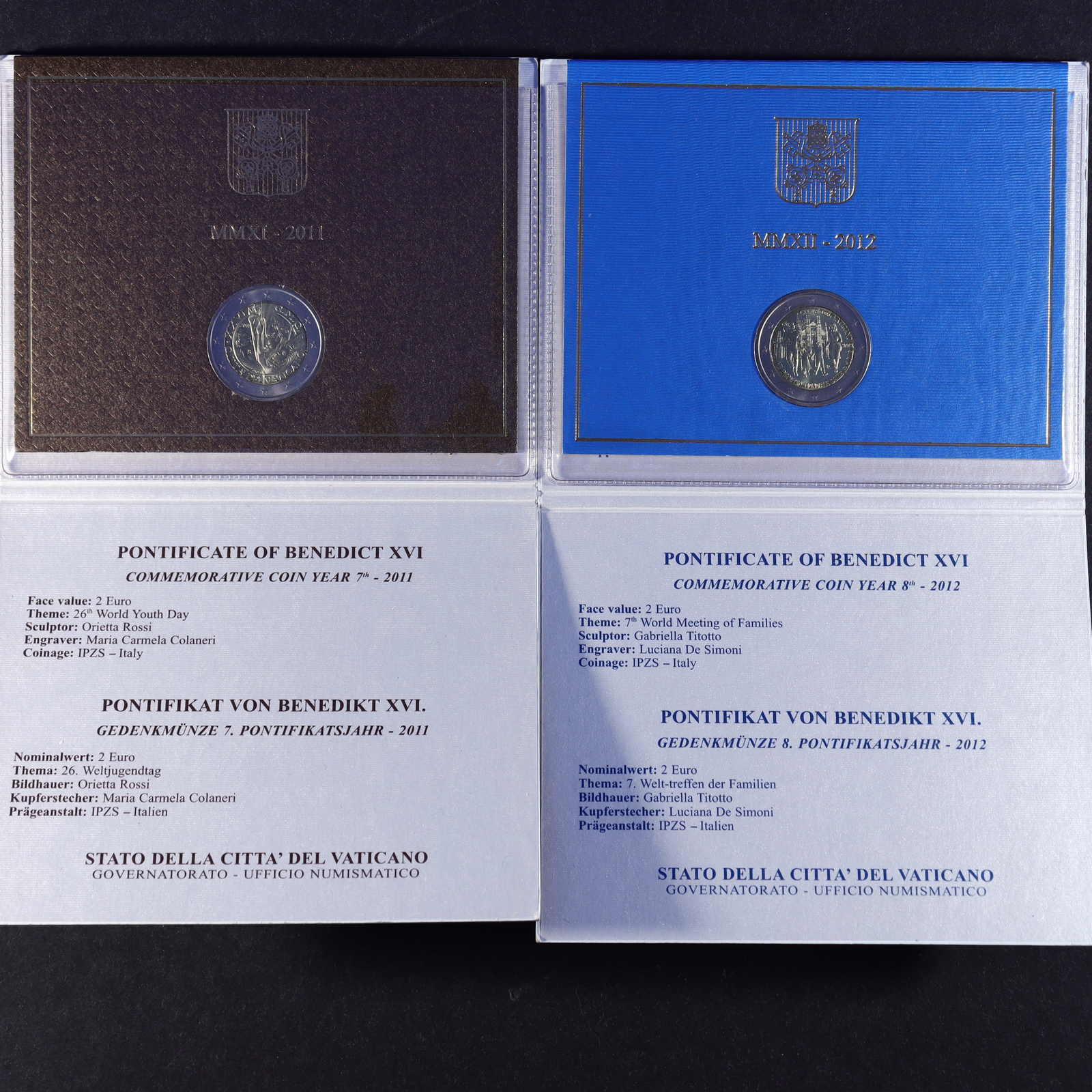 VATIKAN: 2005/18, 2 Euro 2005 im Blister, KMS 2007 PP (Schleife stärkere Gebrauchsspuren), 5 und 10 Euro Silber 2004 und 2006 jeweils im Blister, dazu 10 originale Vor-Euro KMS (Image) (imagea)