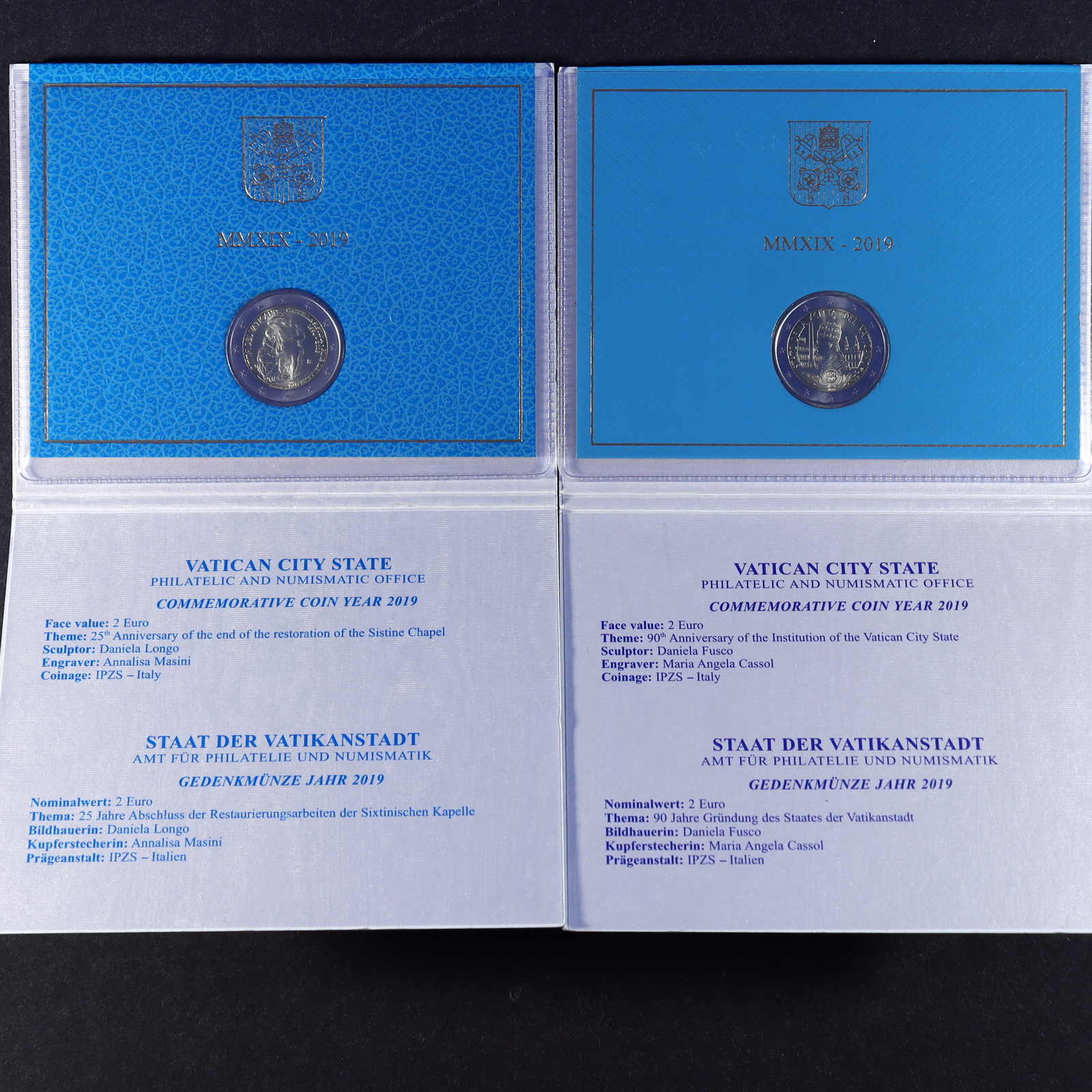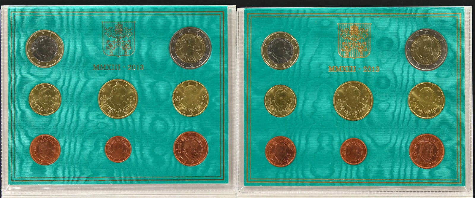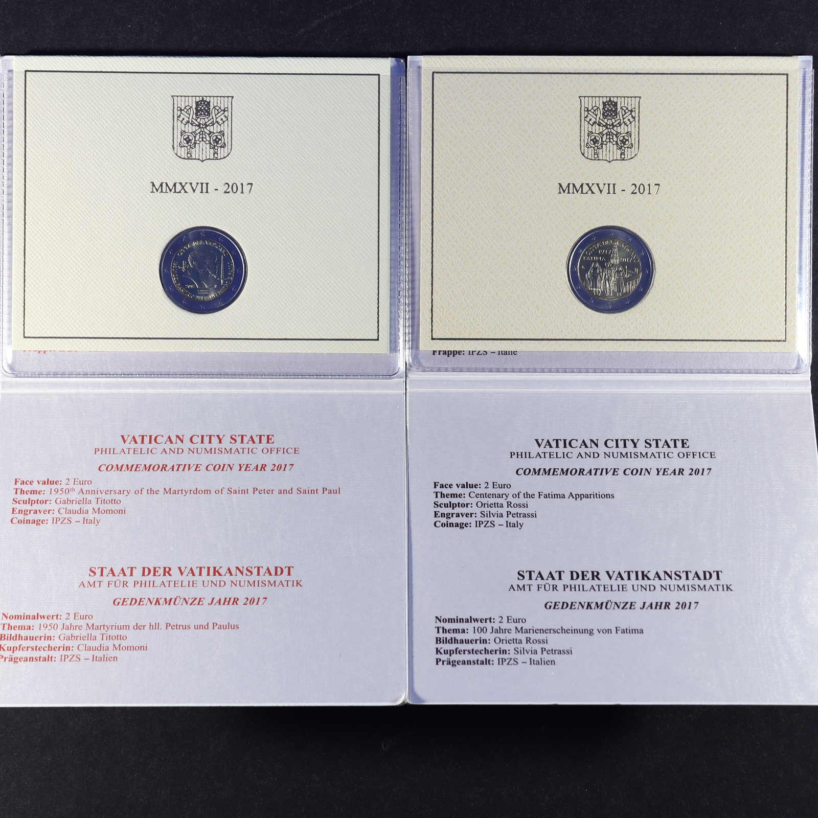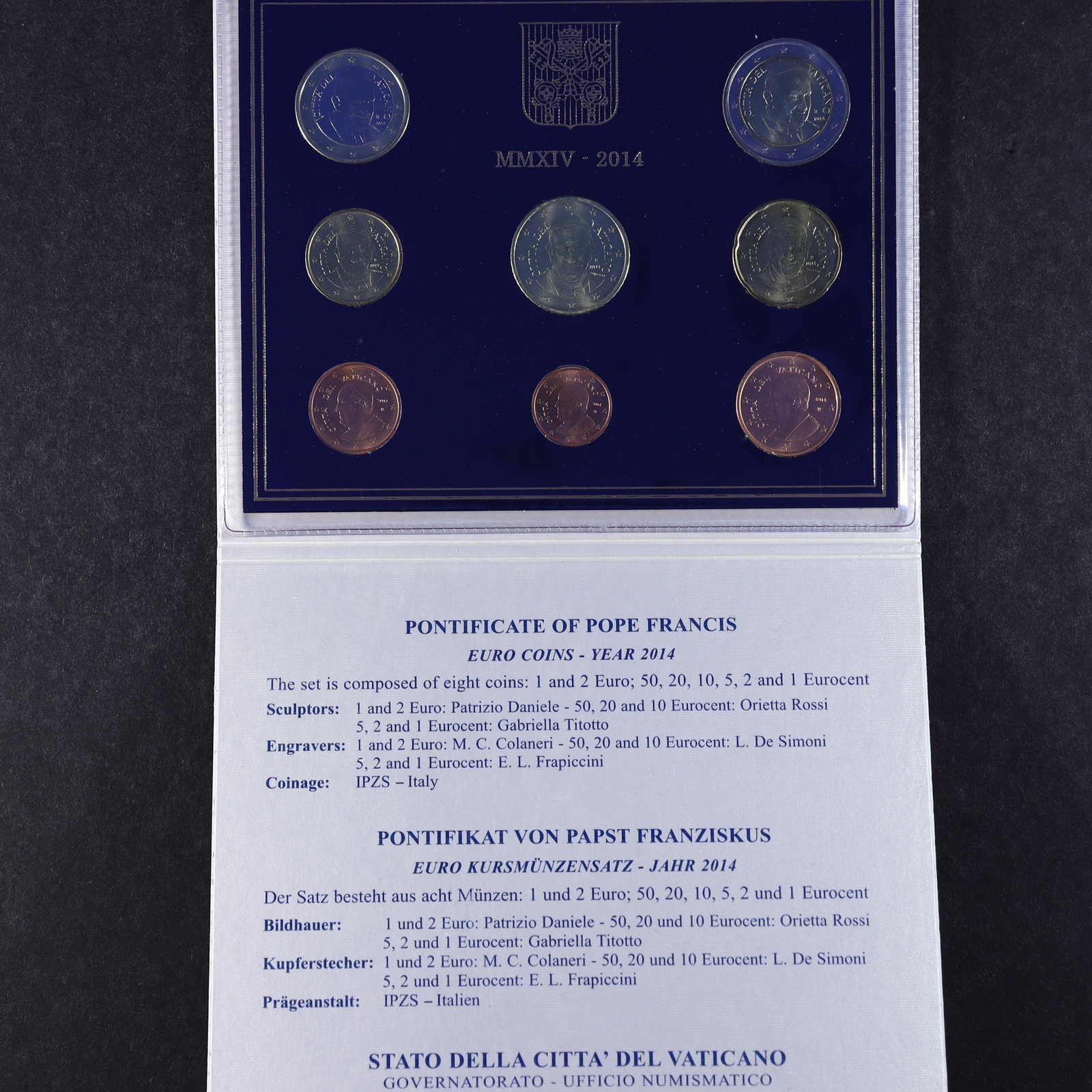 VATIKAN: 2005/2018, original KMS 2004, 2005, 2005 Sede, 2mal 2006, 2007, 2008, 2012, 2mal 2013, 2mal 2014, 2015, 2mal 2016, 2017, 2018 zusammen 17 Stück, Blister teilweise leicht bestoßen, dazu 2 Euro im Blister 2004, 2006, 2016 (Image) (imagea)