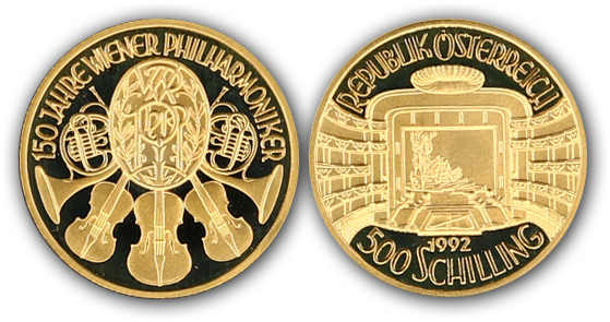 GOLD: 1992, "Wiener Philharmoniker", 500 Schilling, 8g 986/1000 Gold mit Zertifikat und Box (Image) (imagea)