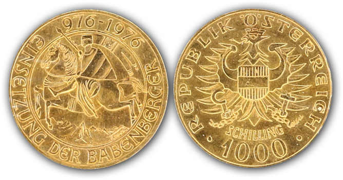 GOLD: 1976, 1000 Schilling Babenberger, 13,5 g 900/1000 Gold, vz (Image)