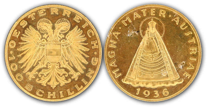 GOLD: 1936, 100 Schilling, 23,52 g 900/1000 Gold, vz (Image)