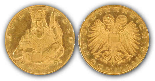 GOLD: 1935, 25 Schilling, 5,88 g 900/1000 Gold, vz- (leicht berieben) (Image)
