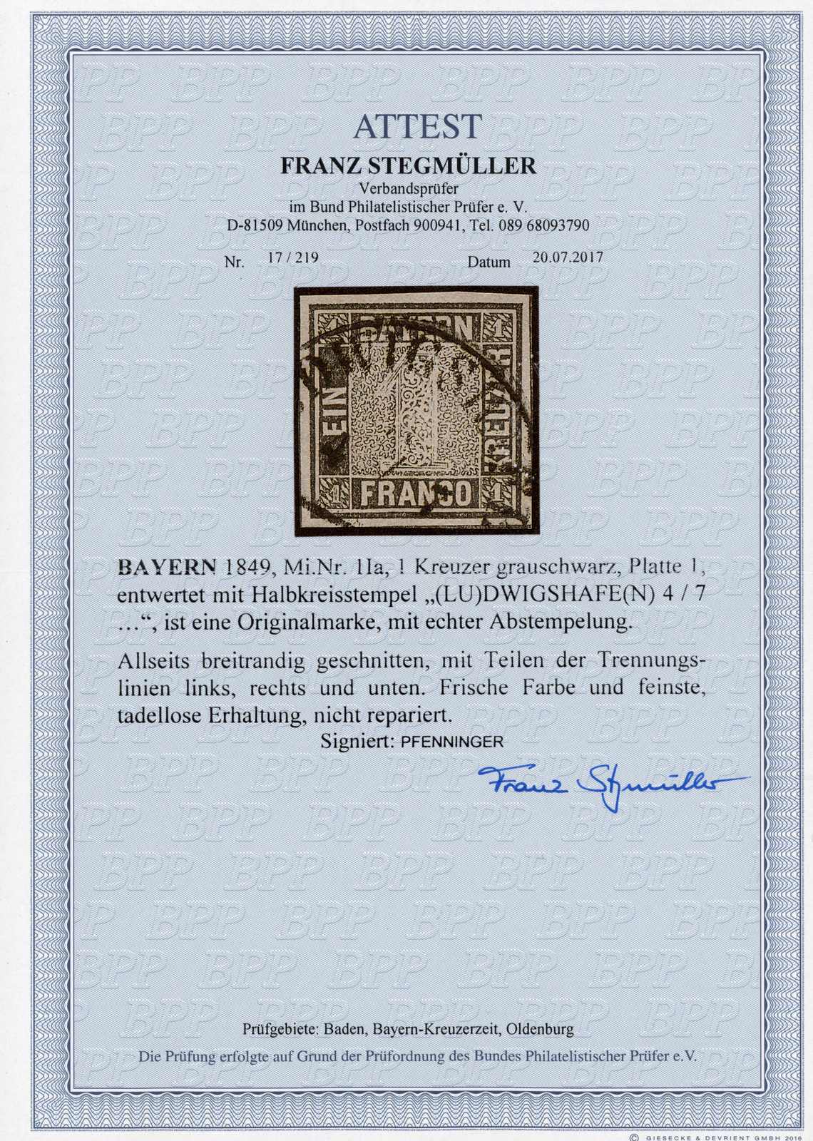 Get Market Data for [Germany (Bavaria) Michel: 1 I a] Visual Pricing Guide Sample Census
