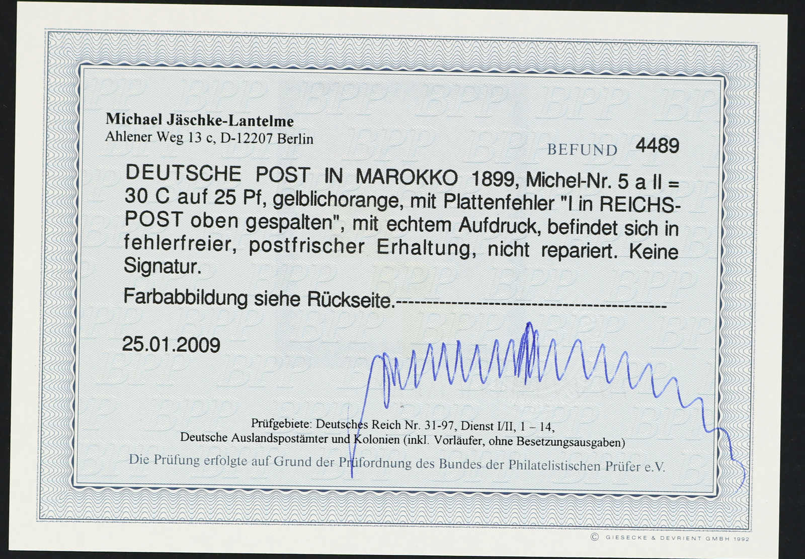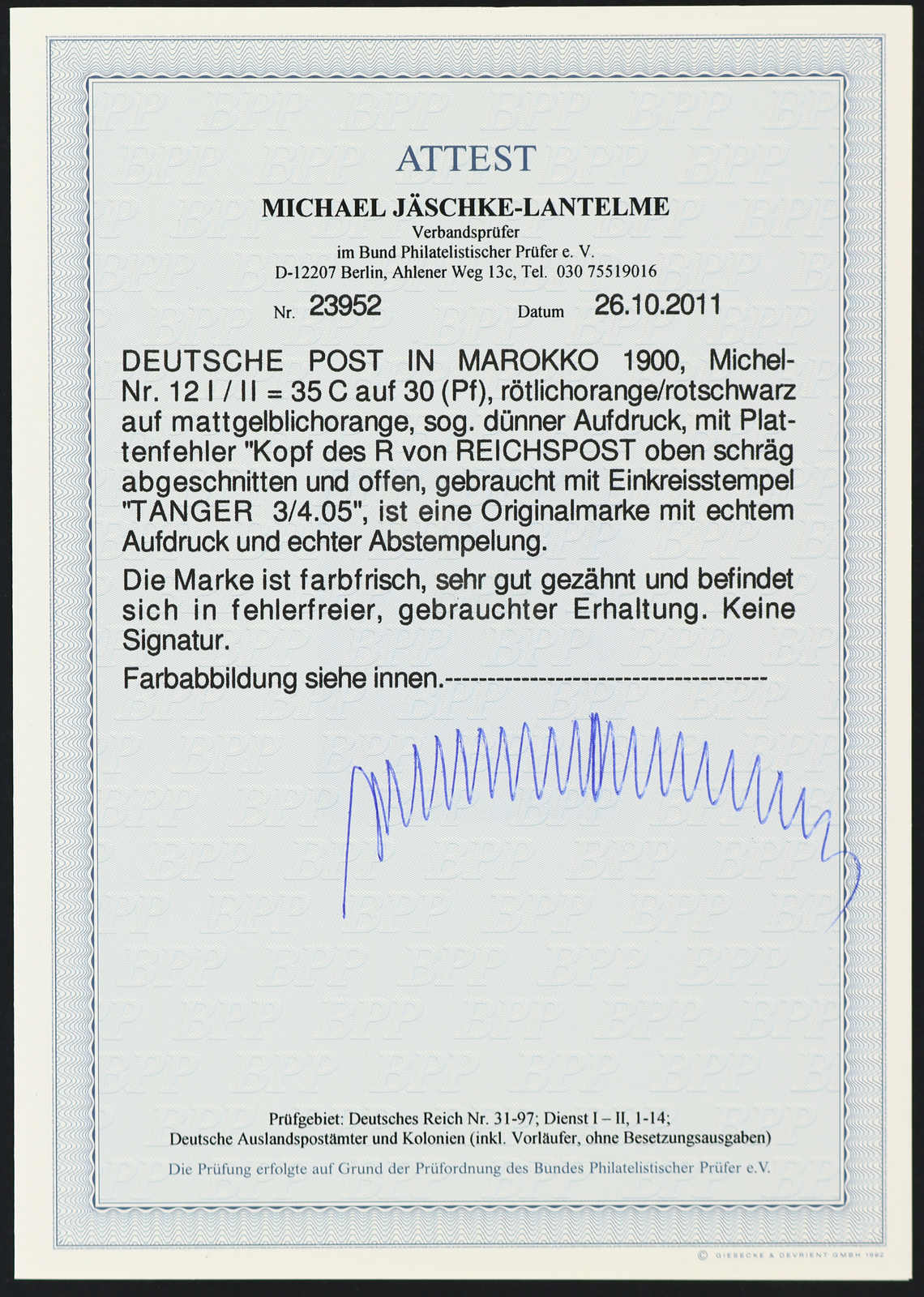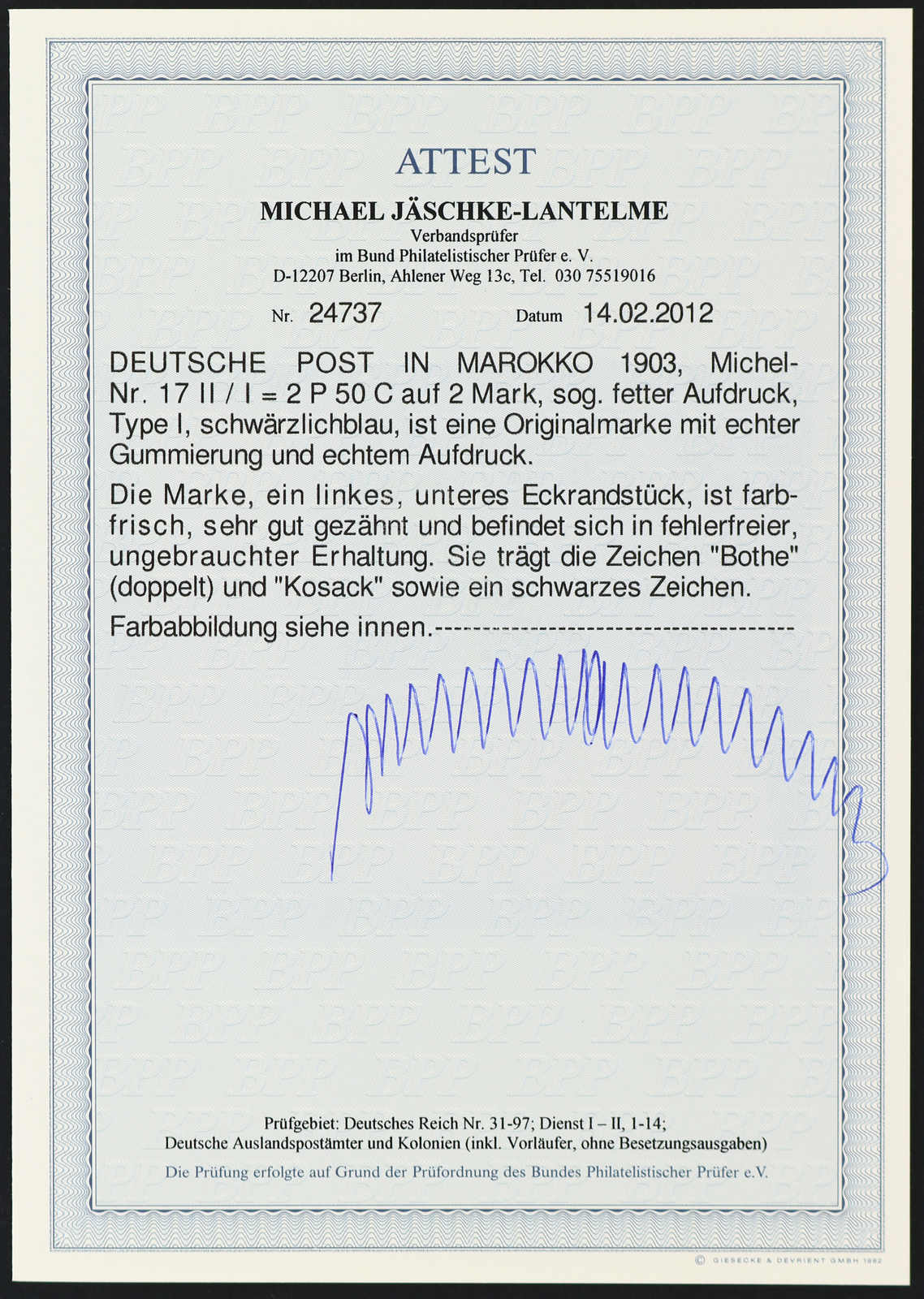 einwandfrei, Fotoattest Jäschke-Lantelme BPP (ME 600,-) (Image)