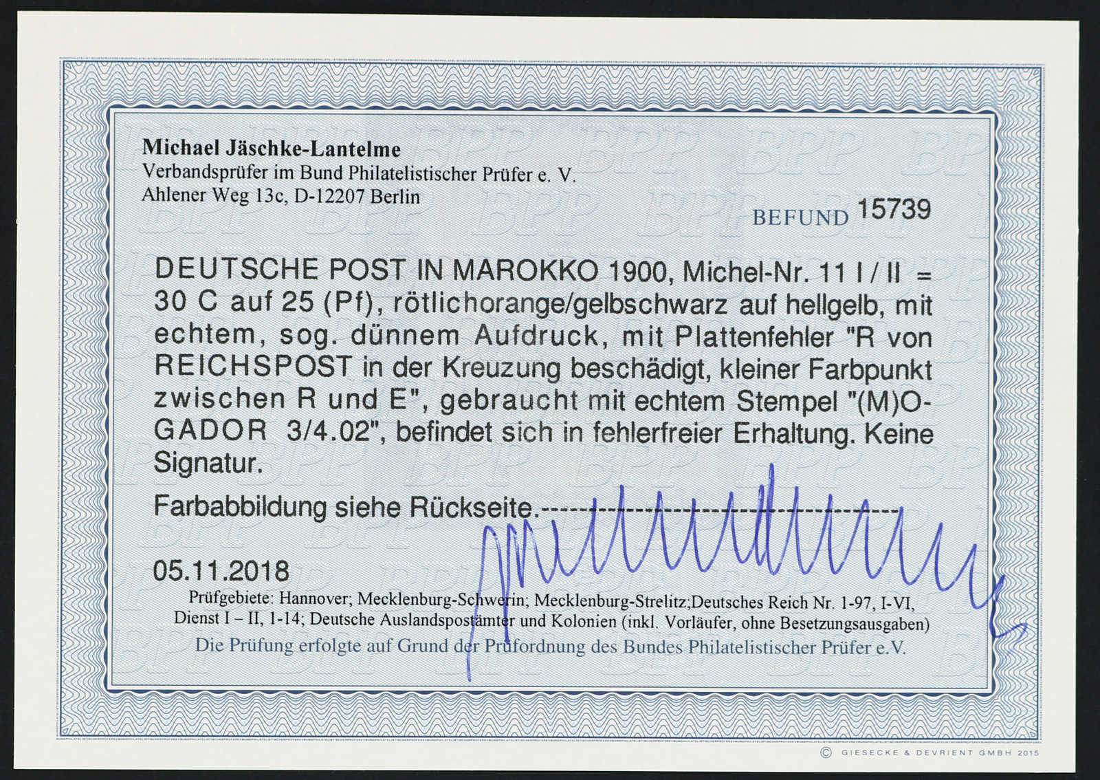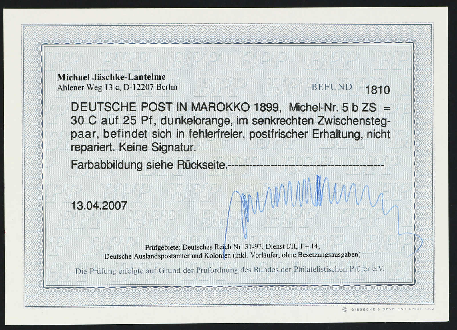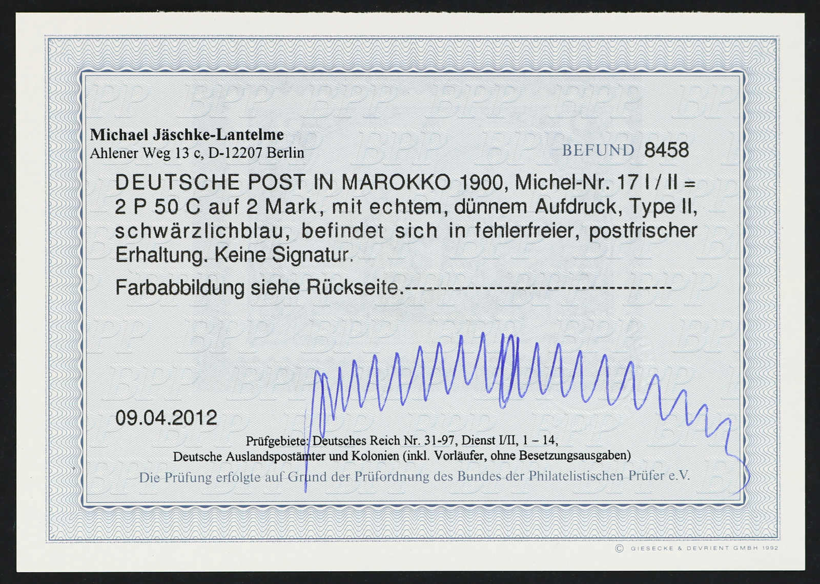 einwandfrei, Fotoattest Jäschke-Lantelme BPP (ME 600,-) (Image)