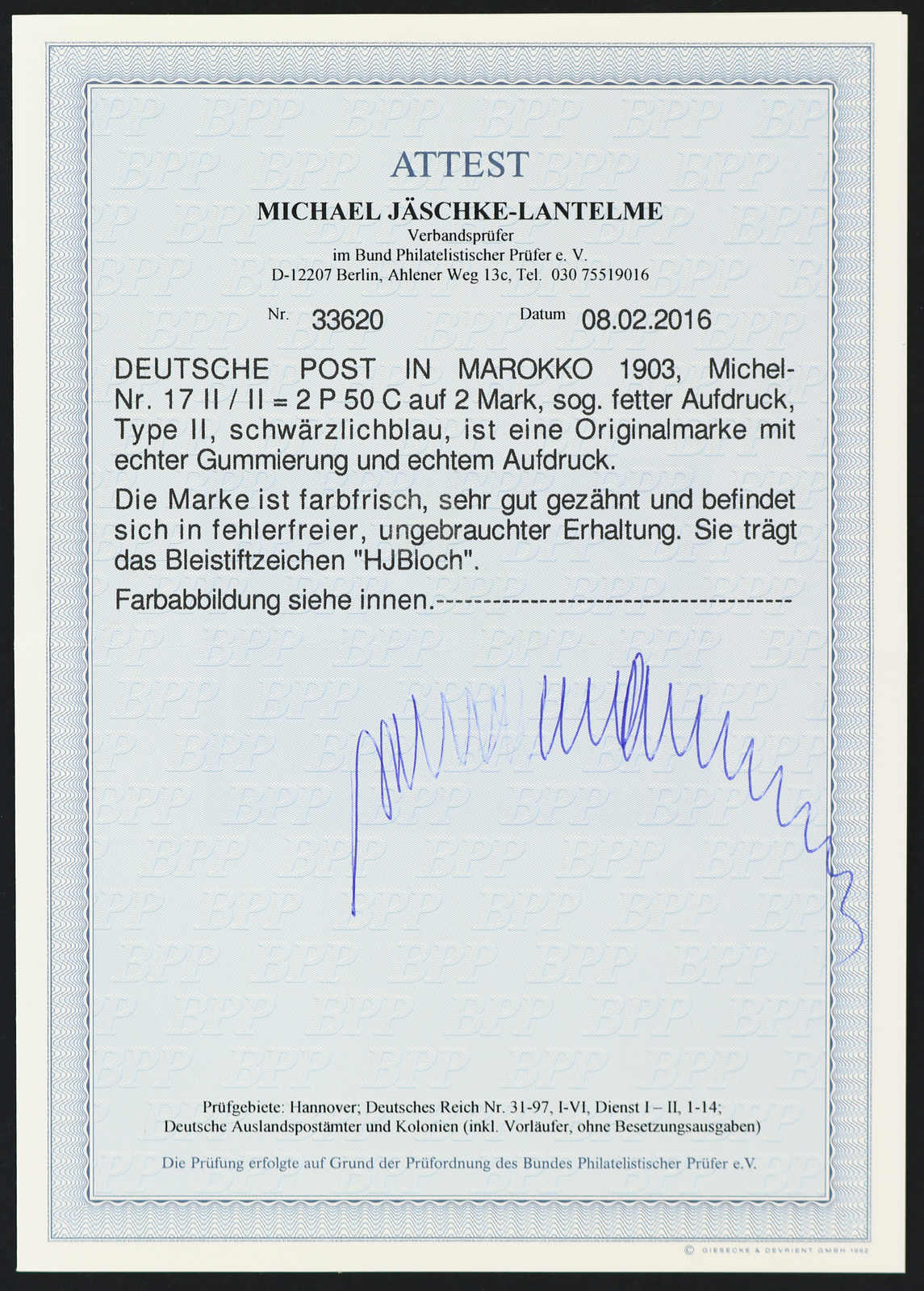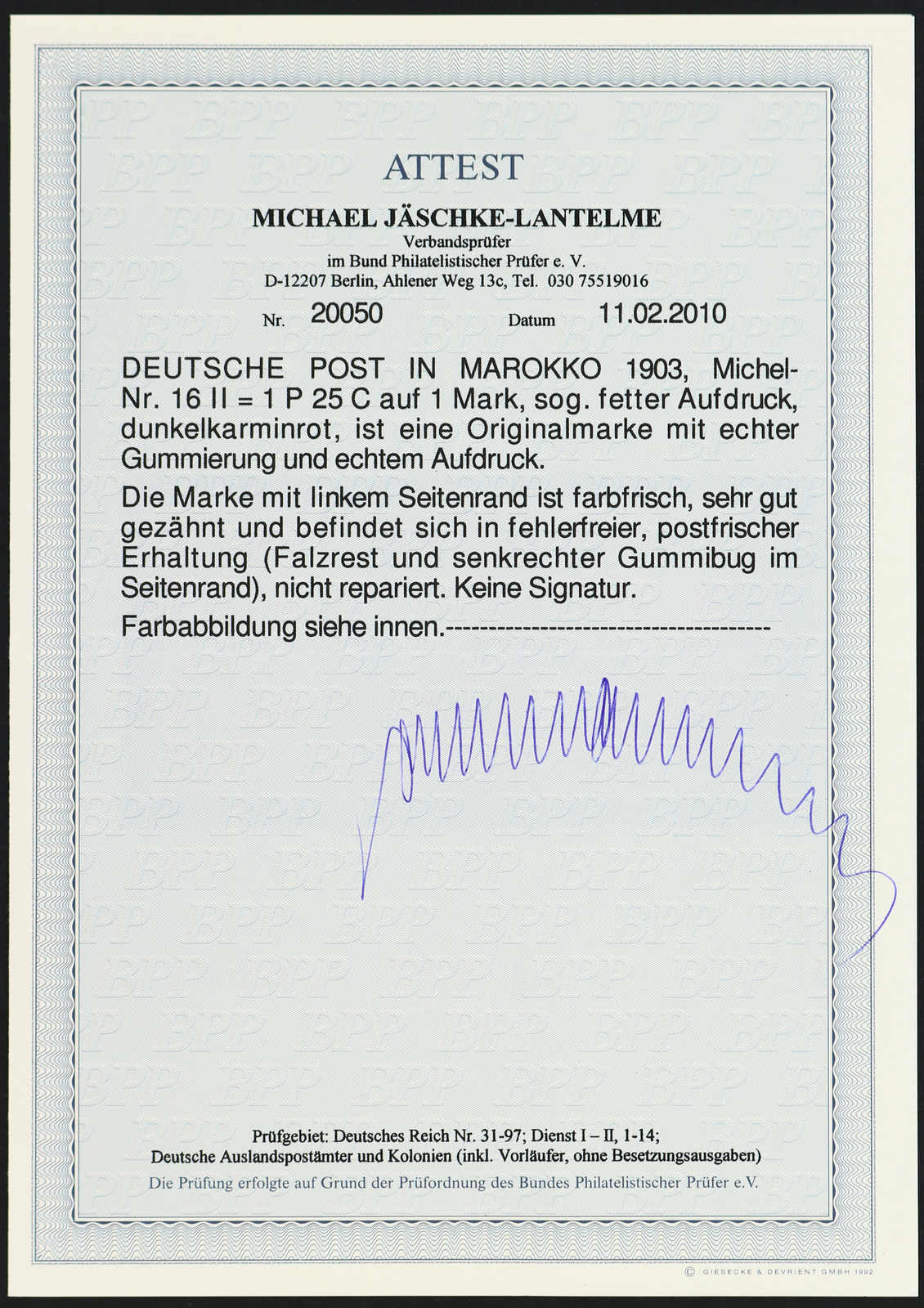 02", einwandfrei, Fotobefund Jäschke-Lantelme BPP (ME 300,-) (Image)