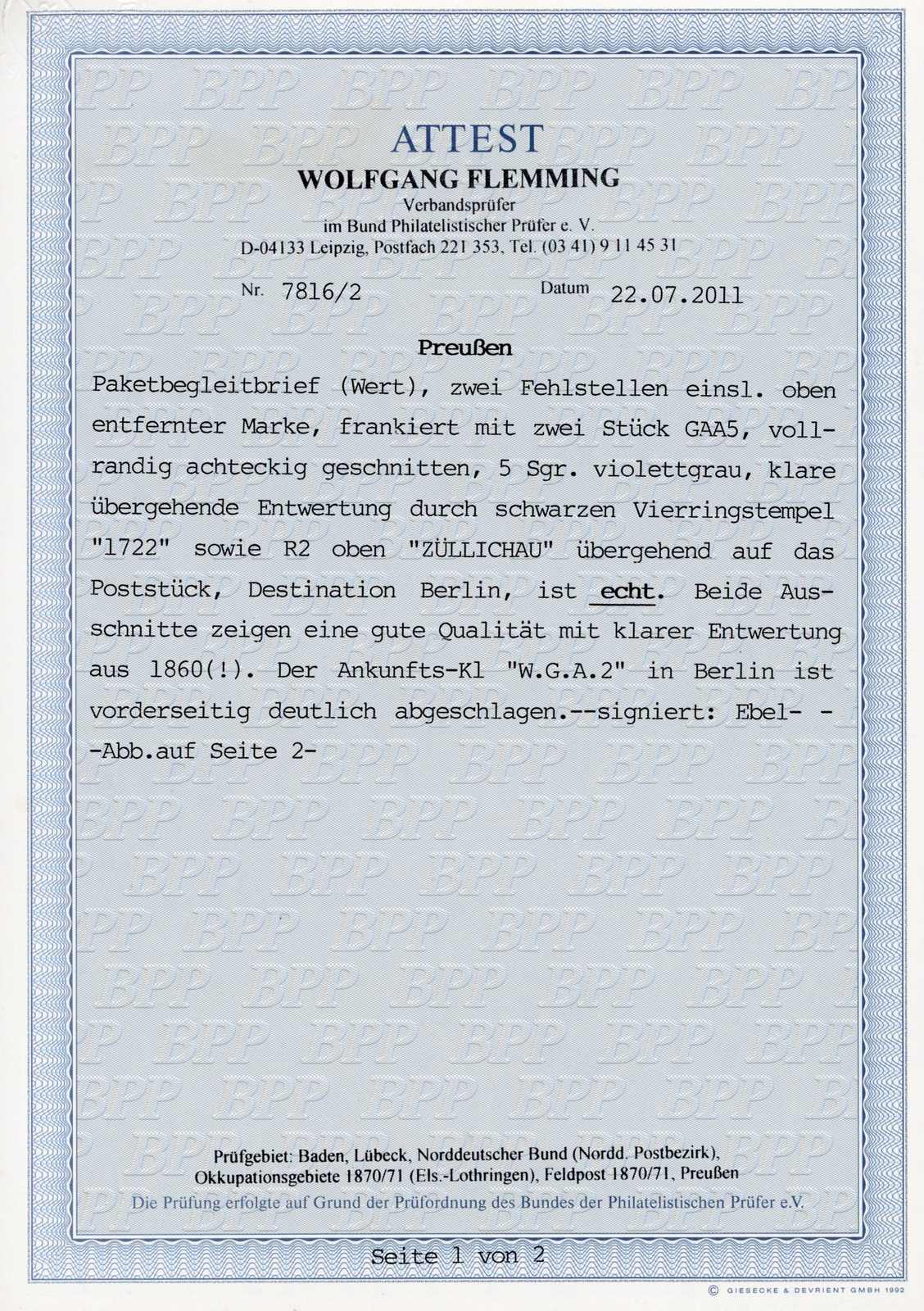 Get Market Data for [Germany (Prussia) Michel: GAA 5 (2)] Visual Pricing Guide Sample Census