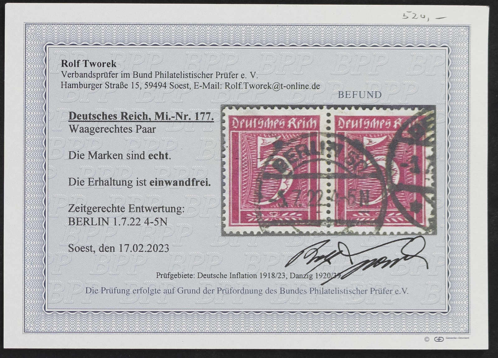 Get Market Data for [German Empire Michel: 177 (2)] Visual Pricing Guide Sample Census