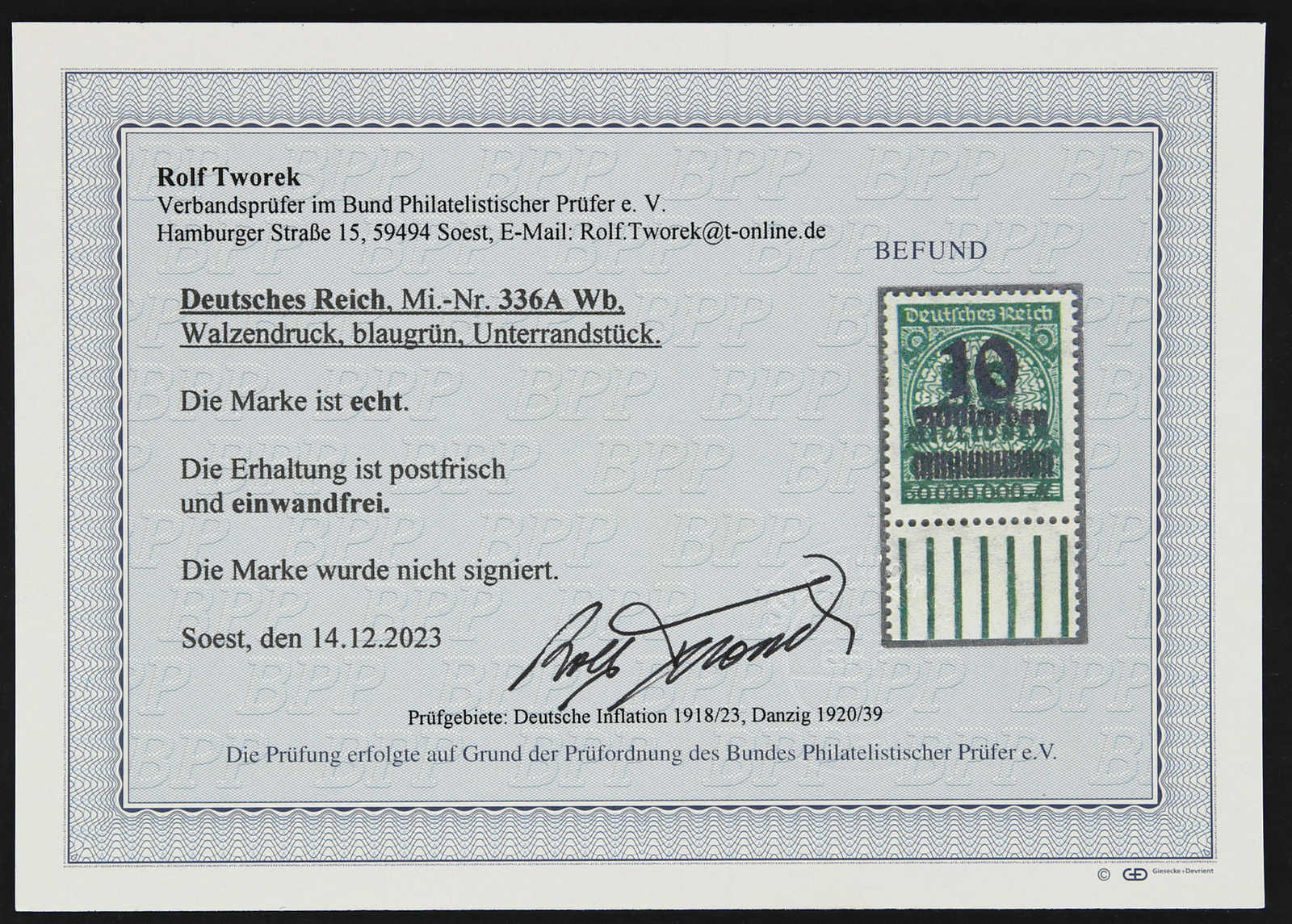 Get Market Data for [German Empire Michel: 336 A Wb] Visual Pricing Guide Sample Census
