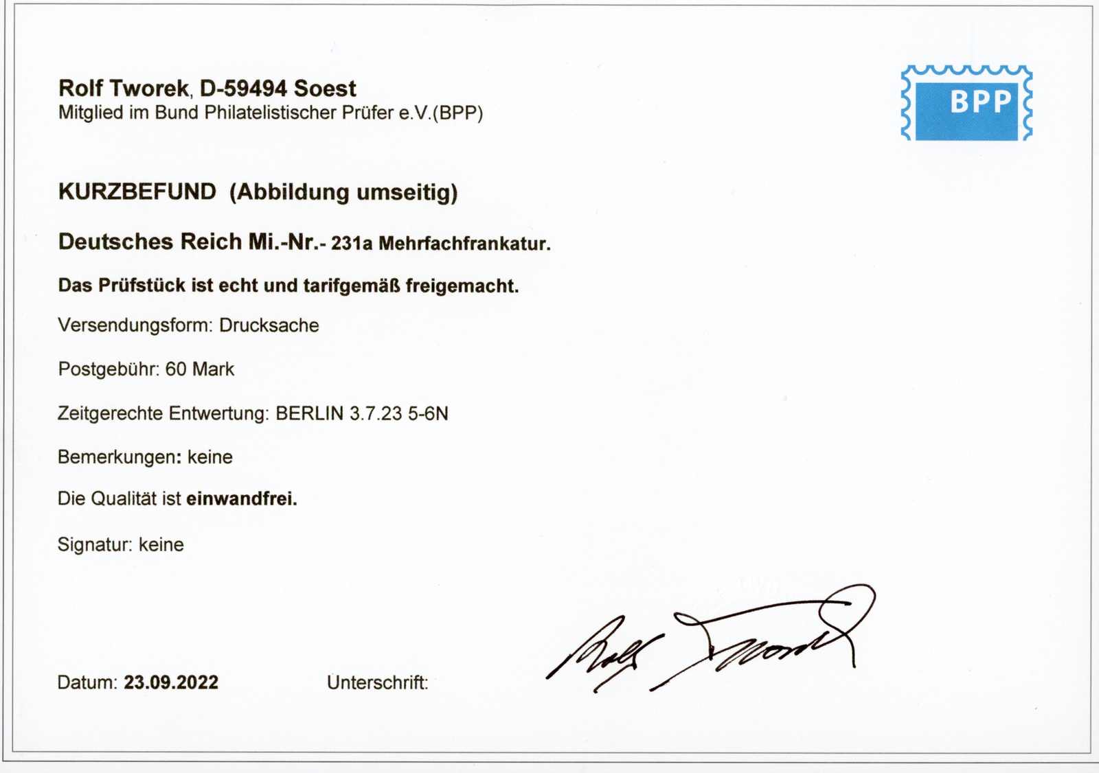 Get Market Data for [German Empire Michel: 231 a (2)] Visual Pricing Guide Sample Census