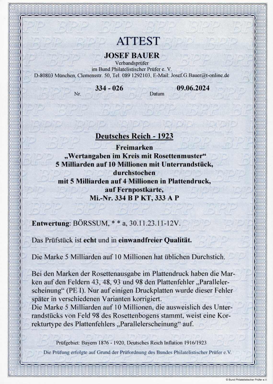 Get Market Data for [German Empire Michel: 334 BP KT, 333 AP] Visual Pricing Guide Sample Census