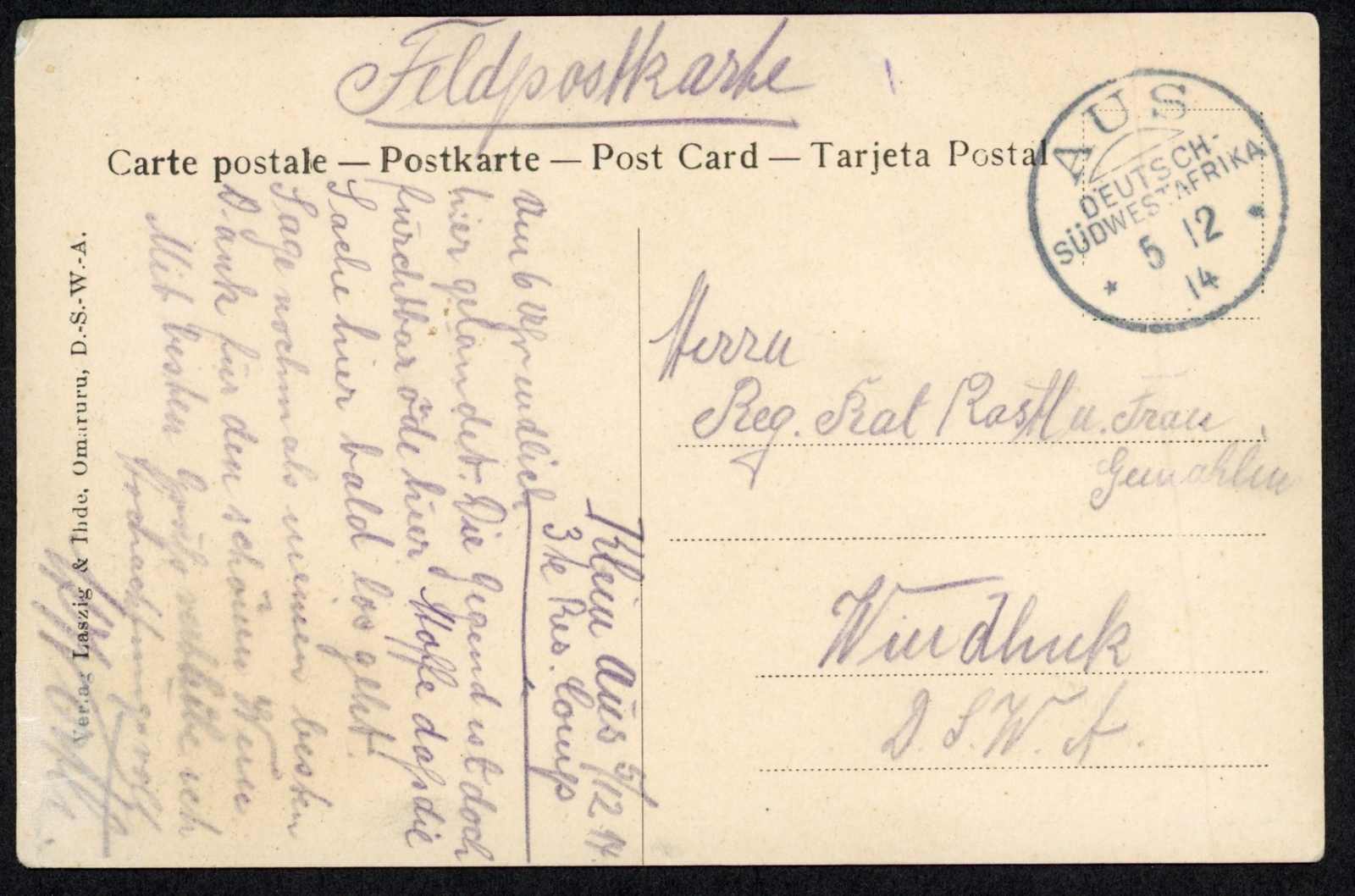 zu ermitteln. Kaiserliches Postamt Windhuk Feldpoststelle", und handschriftl. Vermerk "zurück 25/7.", eine ungewöhnliche und seltene Kombination in sehr sauberer Qualität (Image) (imagea)