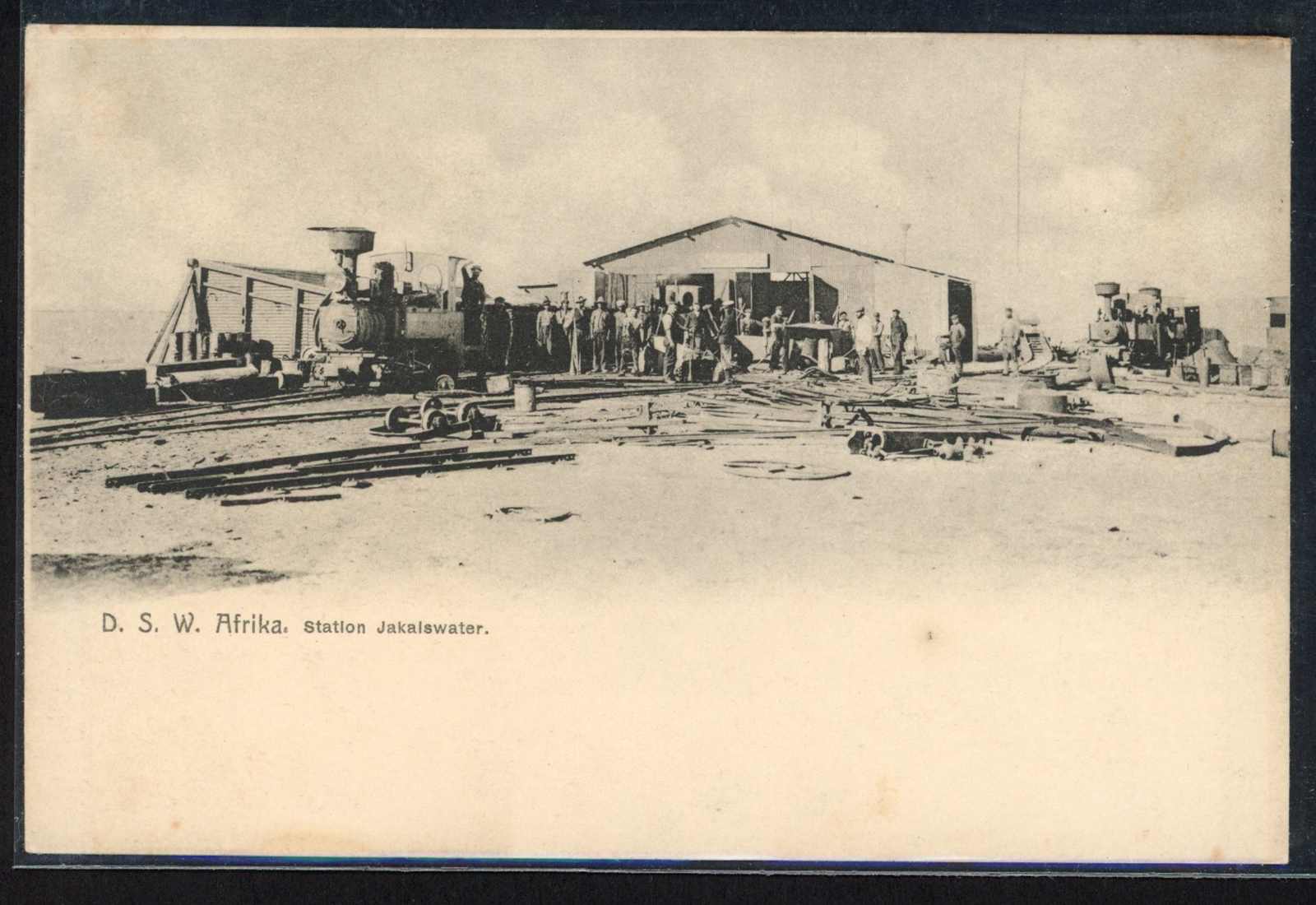 Jakalswater, Station der Bahnstrecke Swakopmund-Windhoek bei km 99, ungebrauchte Ansichtskarte, rückseitig leichte Klebespuren und etwas Altersspuren