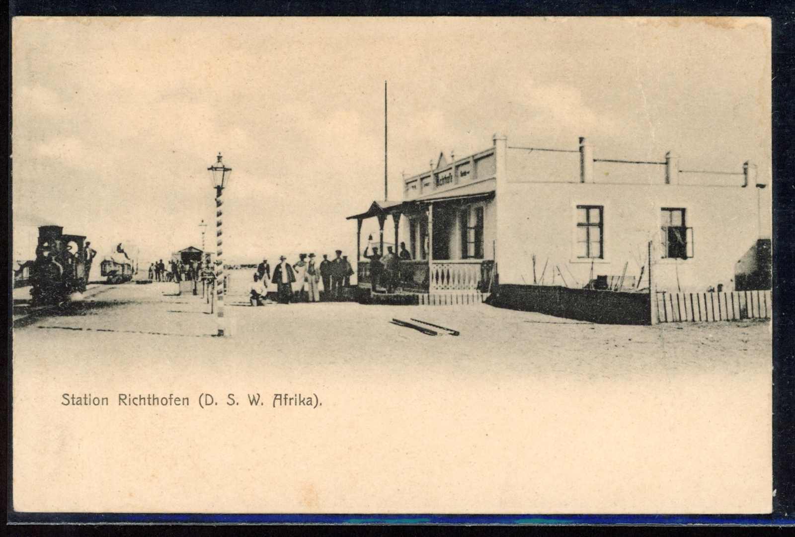 Richthofen, Station der Bahnstrecke Swakopmund-Windhoek bei km 20, ungebrauchte Ansichtskarte, rückseitig leichte Klebespuren und etwas Altersspuren