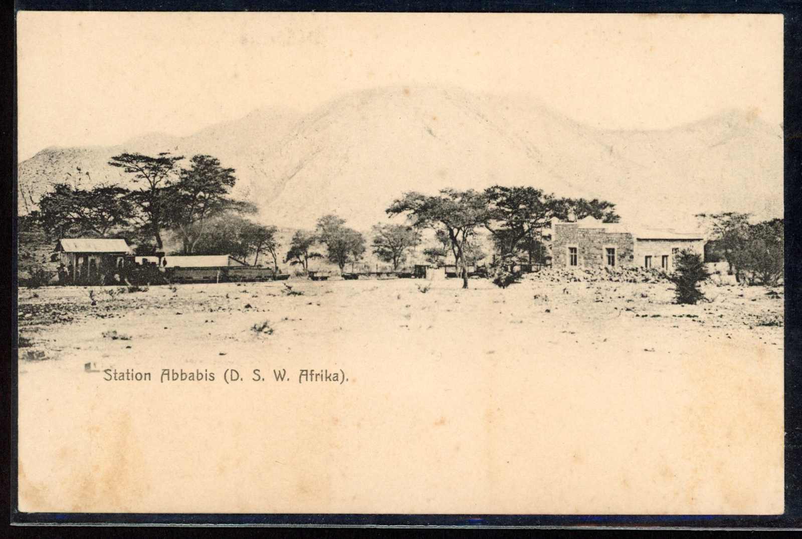Abbabis, Station der Bahnstrecke Swakopmund-Windhoek bei km 165, ungebrauchte Ansichtskarte, Altersspuren und rückseitige Klebespuren (Image)
