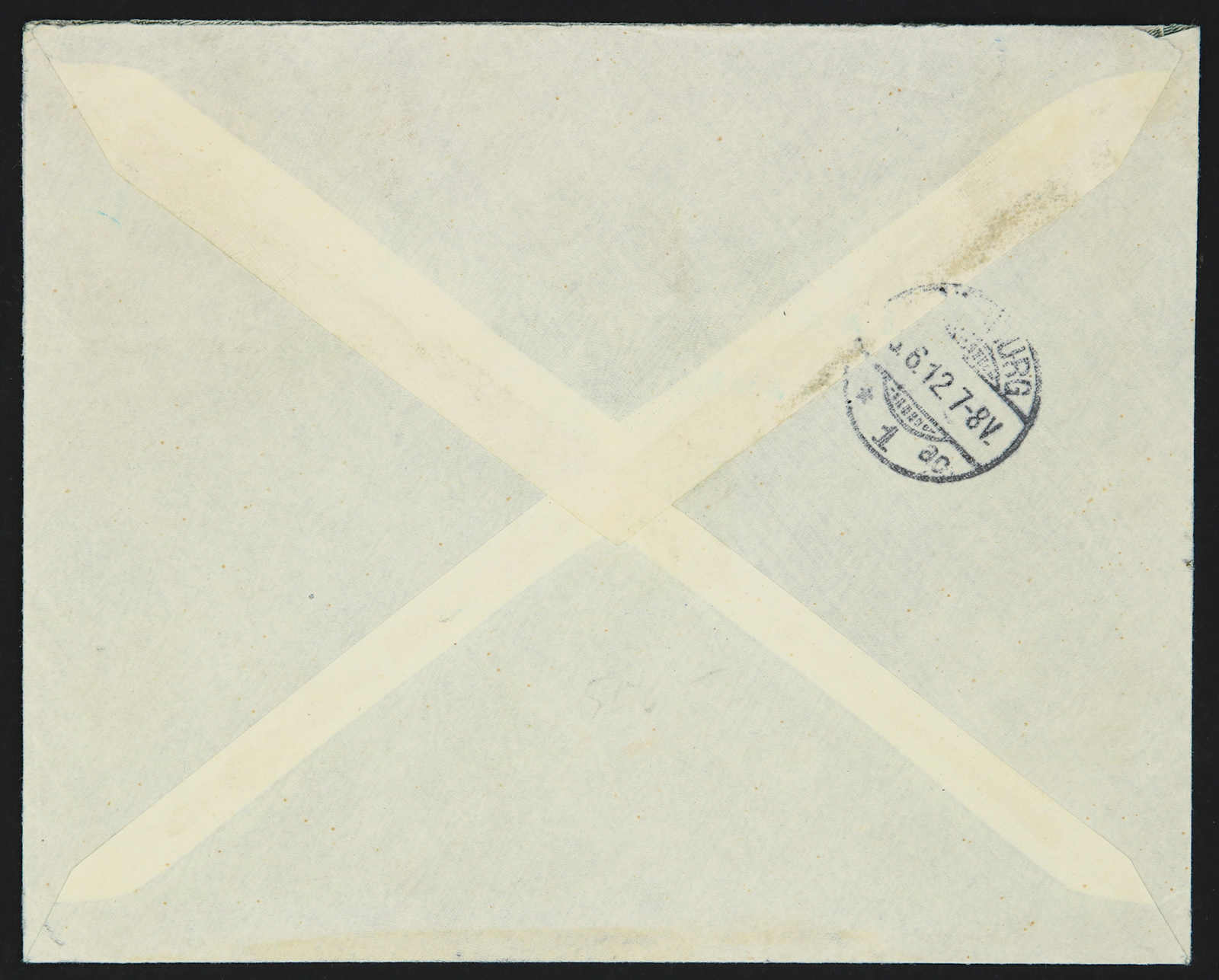 rückseitig je mit Durchgangsstp., die Marke mit Eckzahnfehler oben links und der Brief mit waager. und senkr. Bug, dabei geht der waager. Bug durch die Frankatur, trotz der Mängel ein seltener Brief (Image) (imagea)